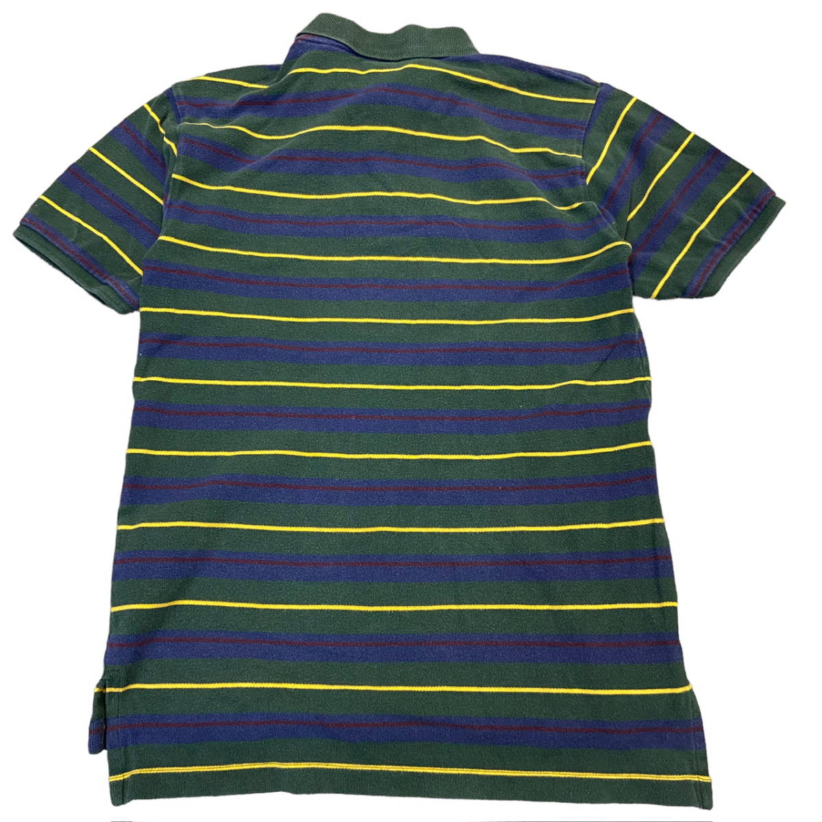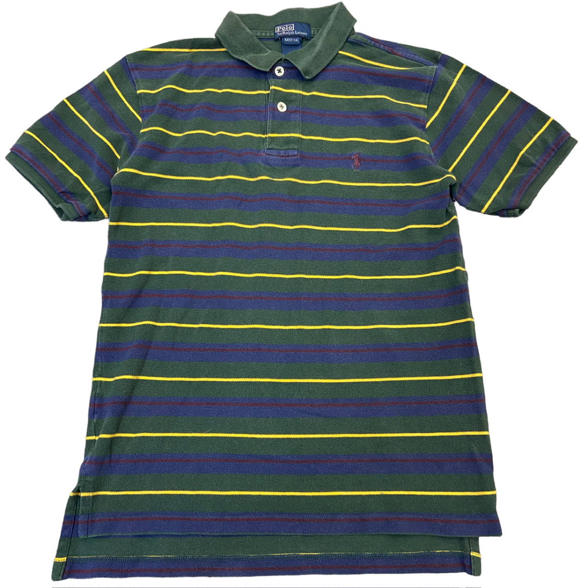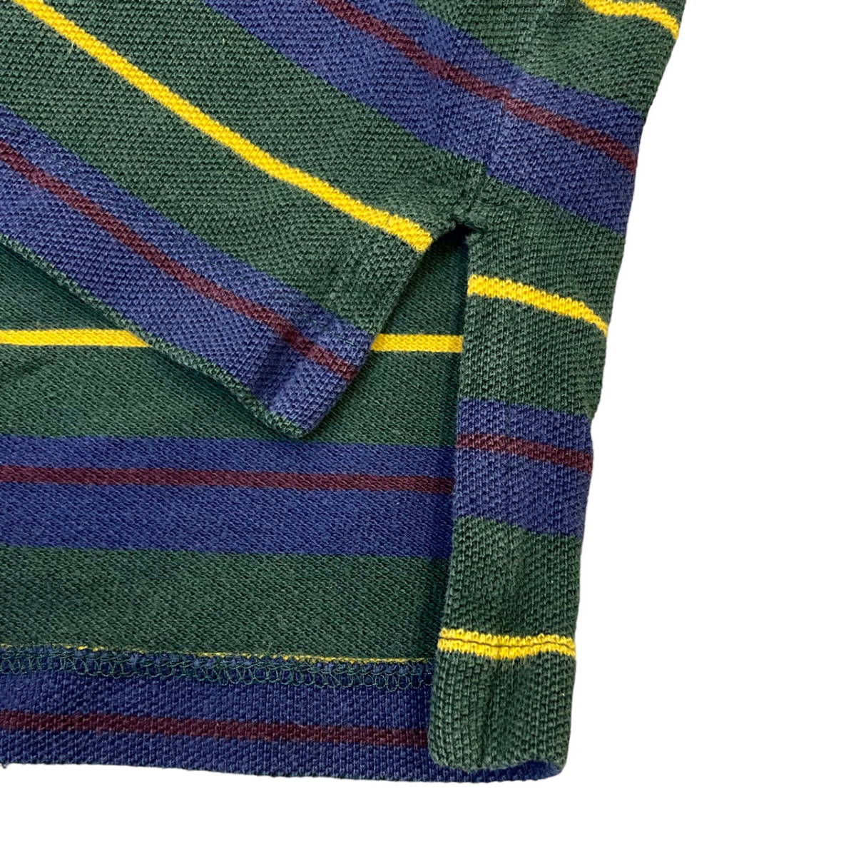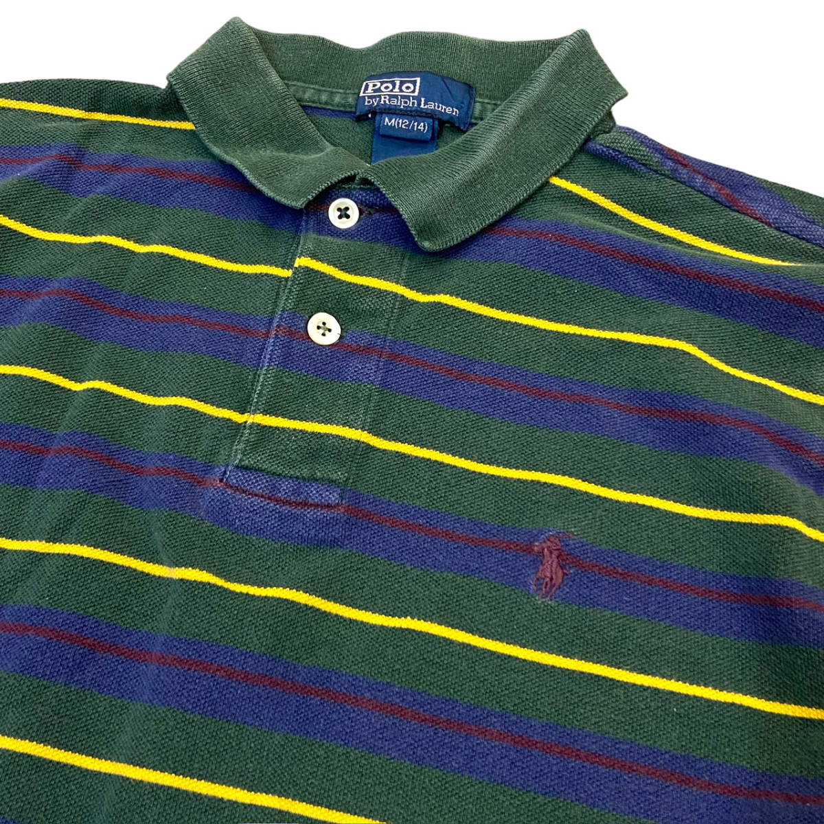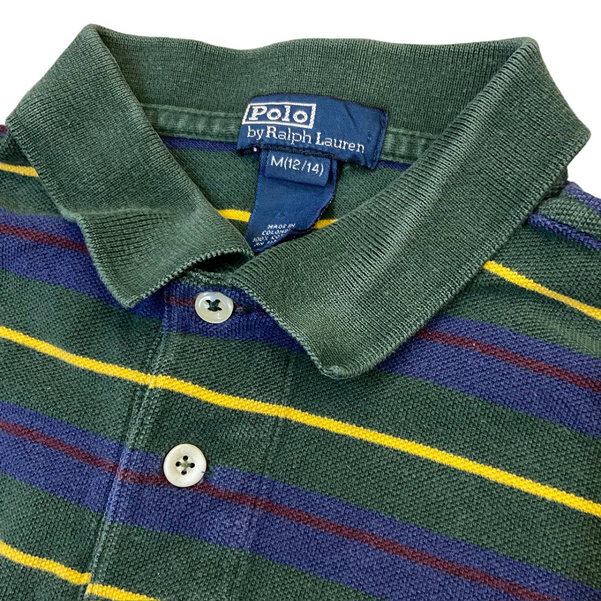 90s Polo Ralph Lauren ポロシャツ Youth M (12/14) グリーン ボーダー柄 ポニー ロゴ刺繍 ポロ ラルフローレン