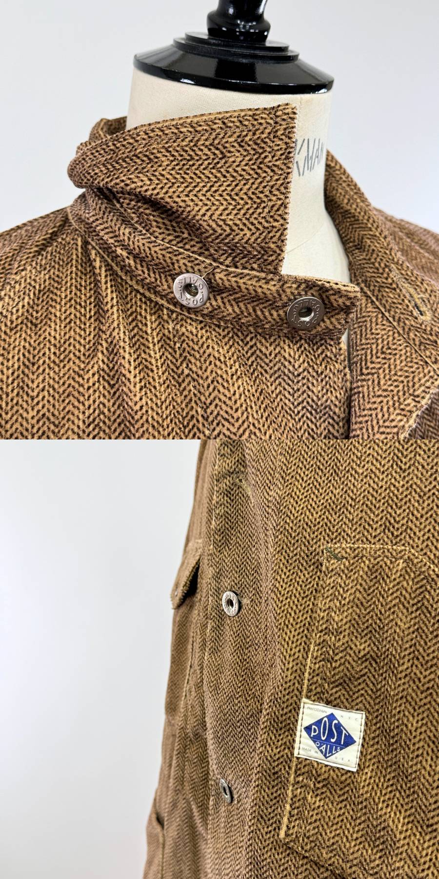 希少《 Good Condition / Old Model / Large 》90s 美品【 POST OVERALLS プリント コーデュロイ ヘリンボーン エンジニア ジャケット】