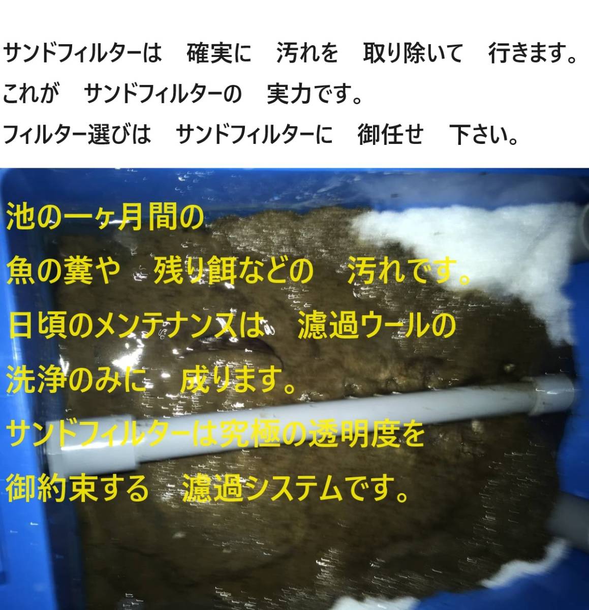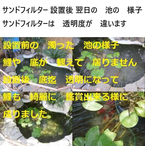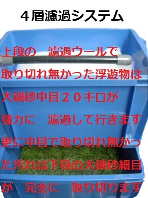 砂を 使用する事により より細かな浮遊物を  濾過する事が 出来ます。