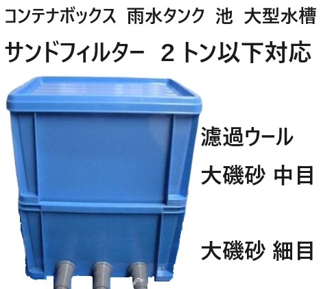 コンテナボックス  雨水タンク 池の濾過装置 サンドフィルター 2トン以下用  濾過ウール ホース付き  3