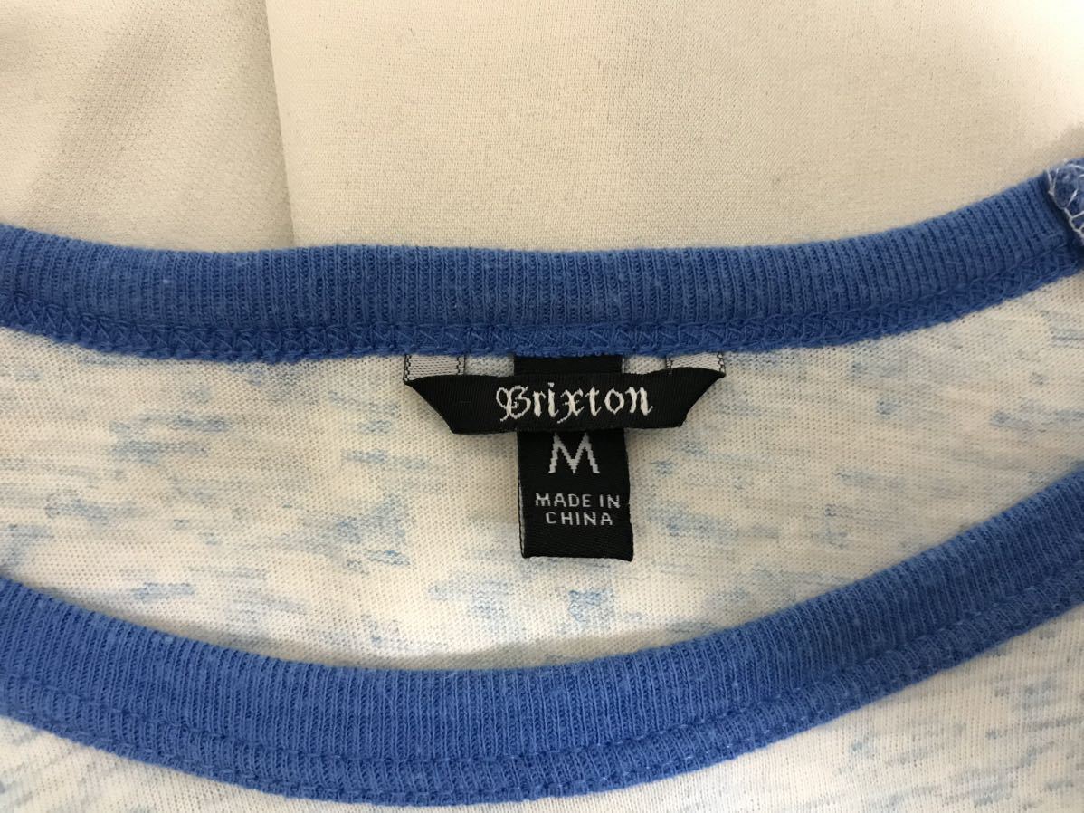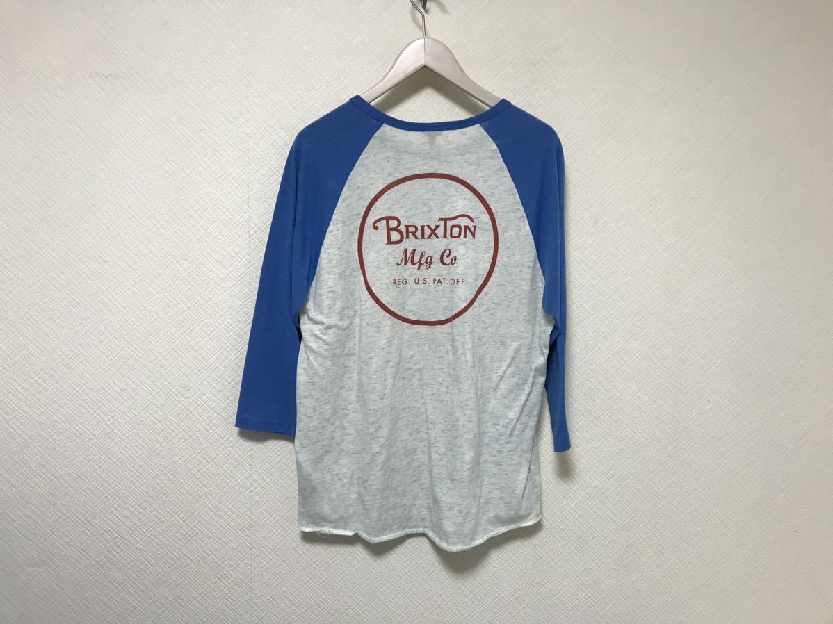 商品名:本物ブリクストンBRIXTONコットンラグラン7部丈長袖TシャツロンTメンズサーフアメカジミリタリーストリートスケーターMグレー青ブルーロゴプリント