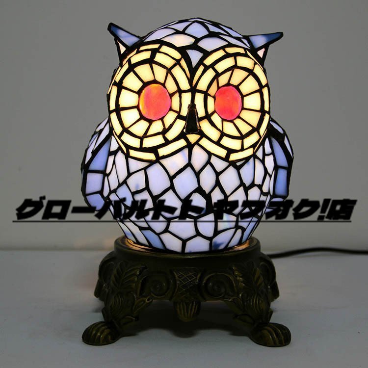 ◆新品◆芸術品◆チューリップ フクロウ 照明 ステンドグラス デスクライト ティファニー ランプ 室内装飾