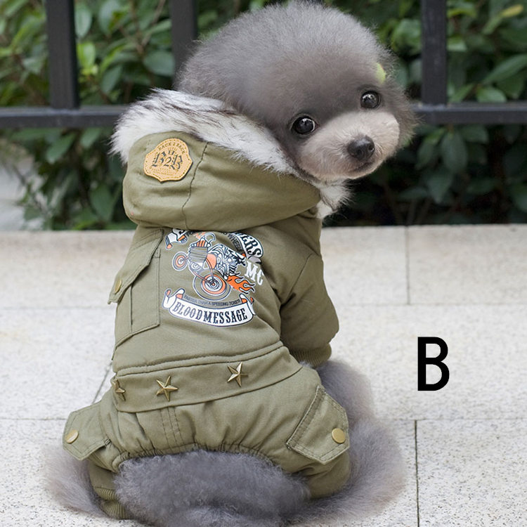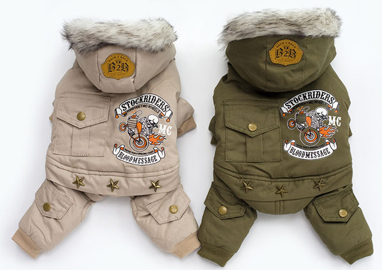 犬の服 ロンパース つなぎ カバーオール フード付き 暖かい 裏起毛 前開き スナップボタン バイク B | |||