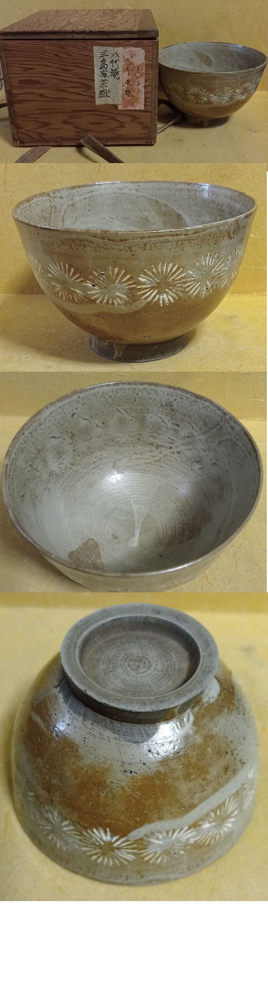 時代 古八代焼 刷毛 三島写 茶碗 五徳庵書付箱 茶道具 時代箱 茶道具