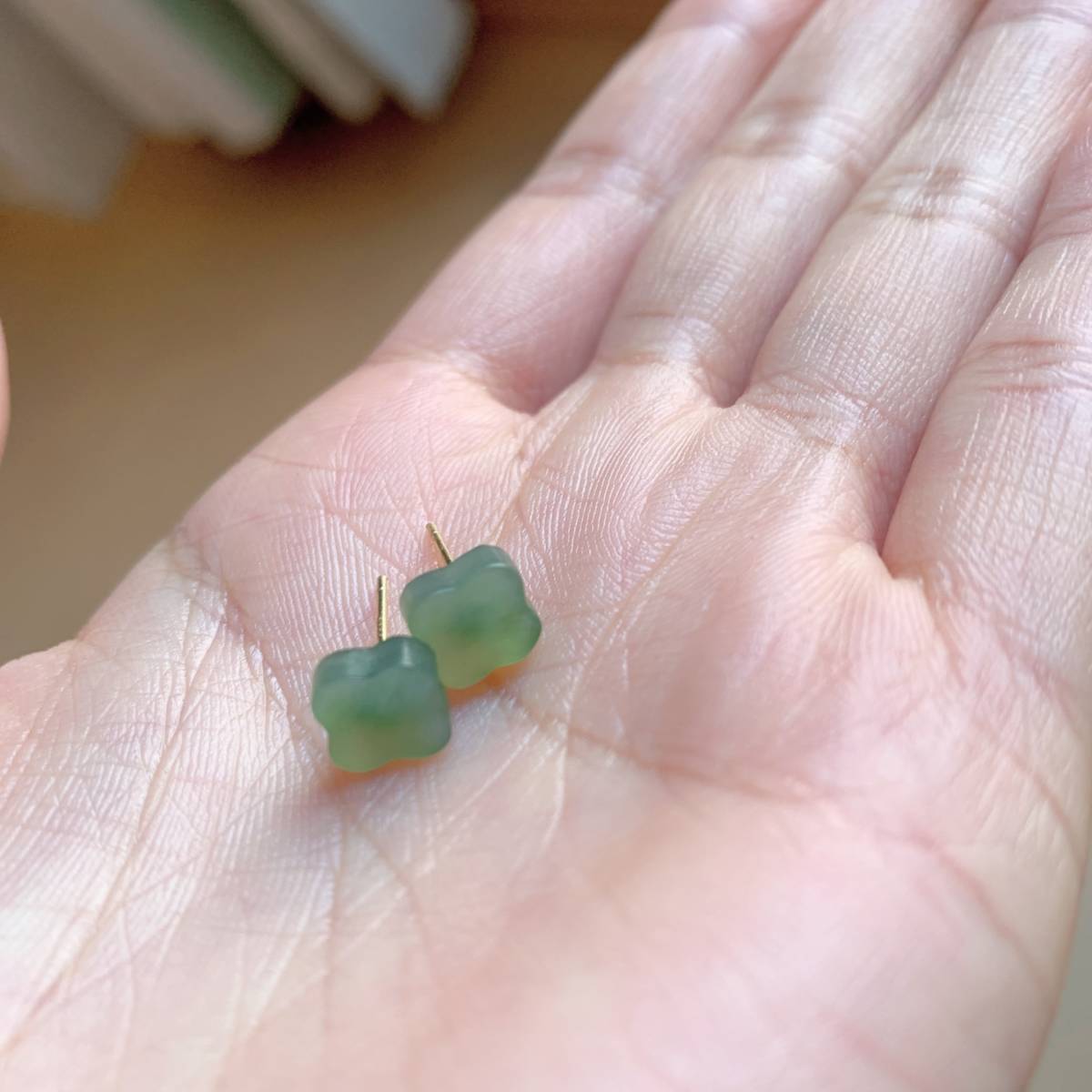 ◇和田玉・碧玉◇ピアス◇レディースイヤリング◇クローバー◇S925◇天然石◇パワーストーン◇巾着袋付き◇プレゼントにも◇026R120613