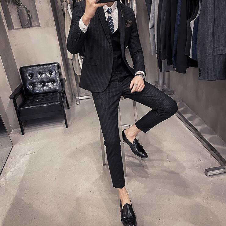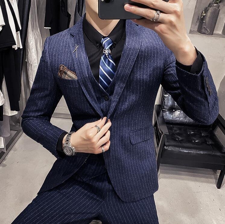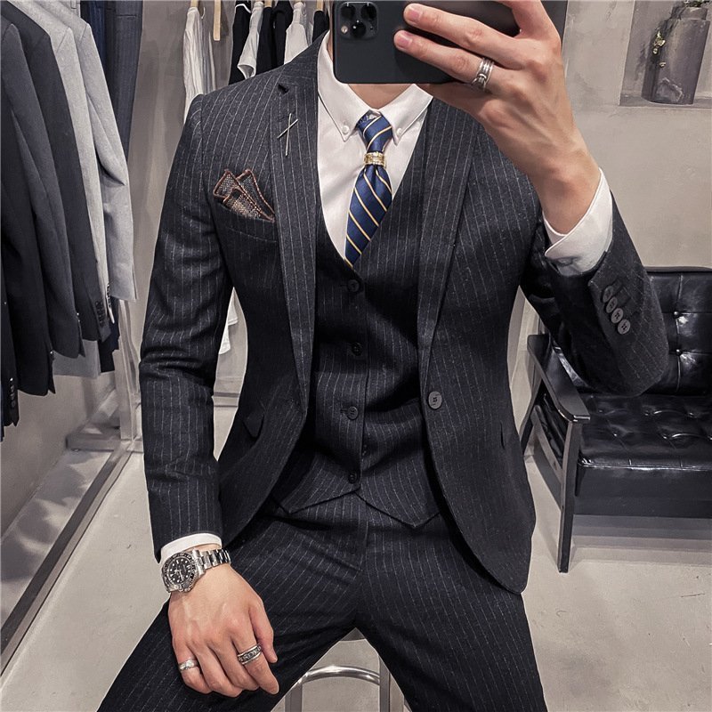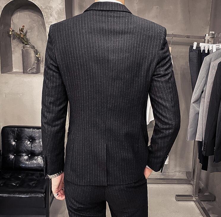 秋冬スーツメンズ ビジネススーツ カジュアルスーツ 3ピーススーツ スーツ フォーマルスーツ 洗える 紳士服 ボーダー柄 結婚式 S~7XL黒