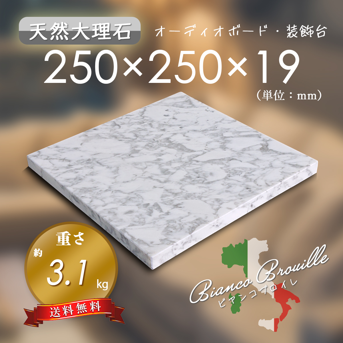 【高級天然大理石】 オーディオボード 装飾台 ビアンコブロイレ 250㎜×250㎜×19㎜ 5面磨き 新品 即決 送料無料 ★超特価★
