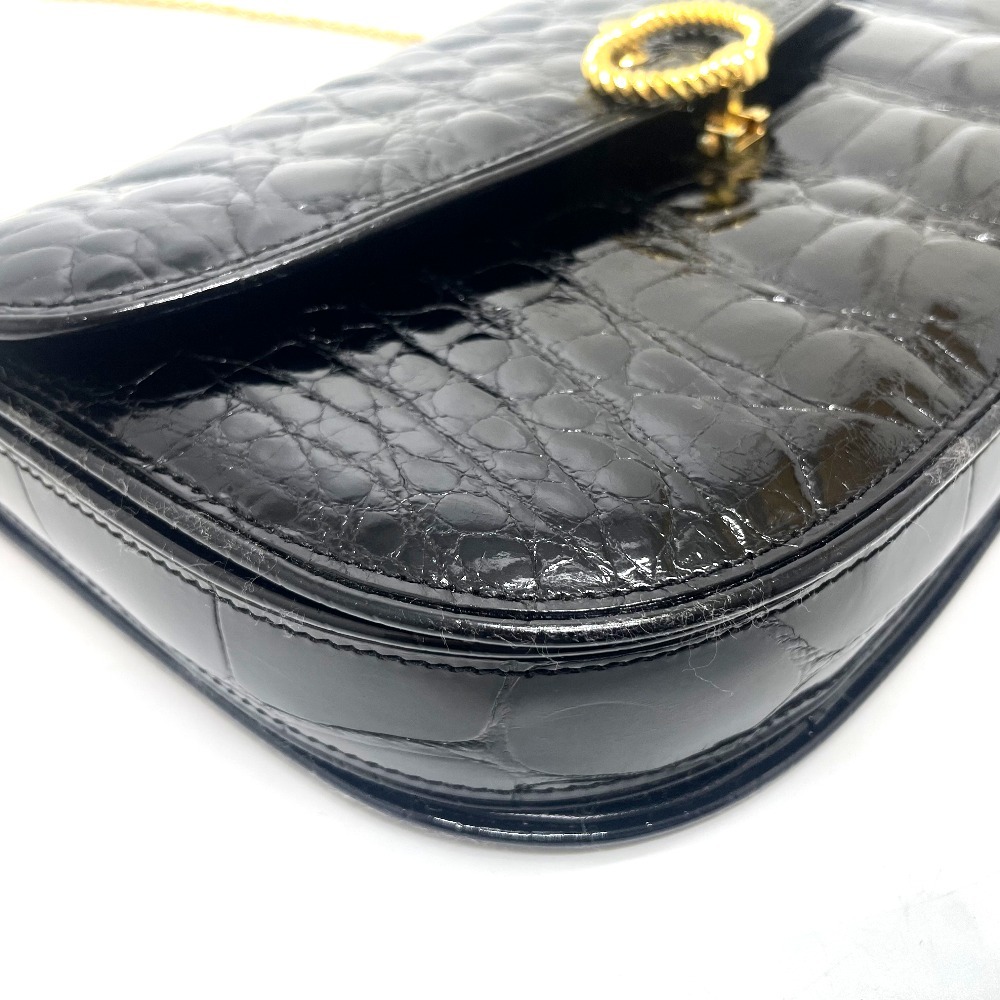 LONGINES ロンジン クロコ ヴィンテージ カバン ショルダーバッグ クロコダイル ブラック レディース【中古】