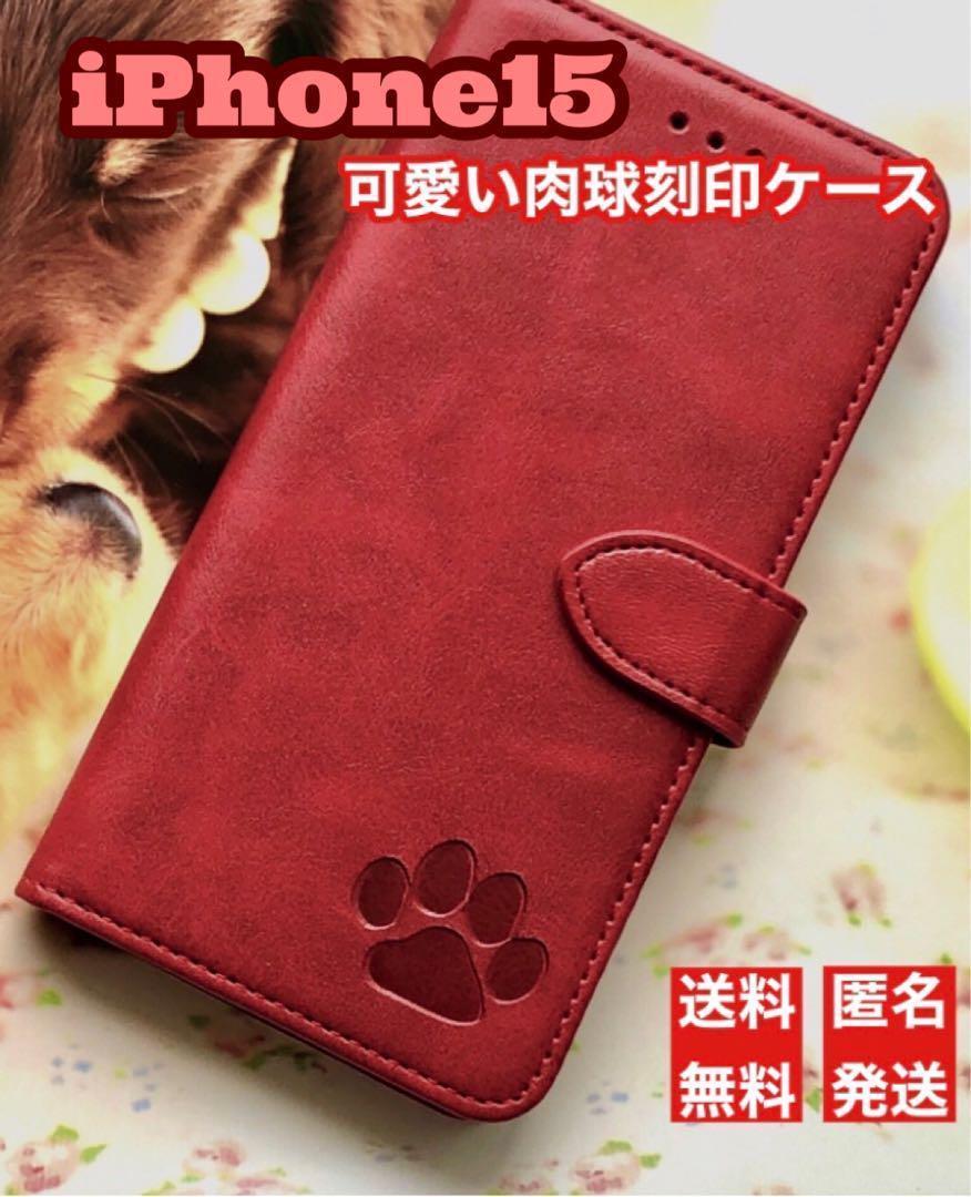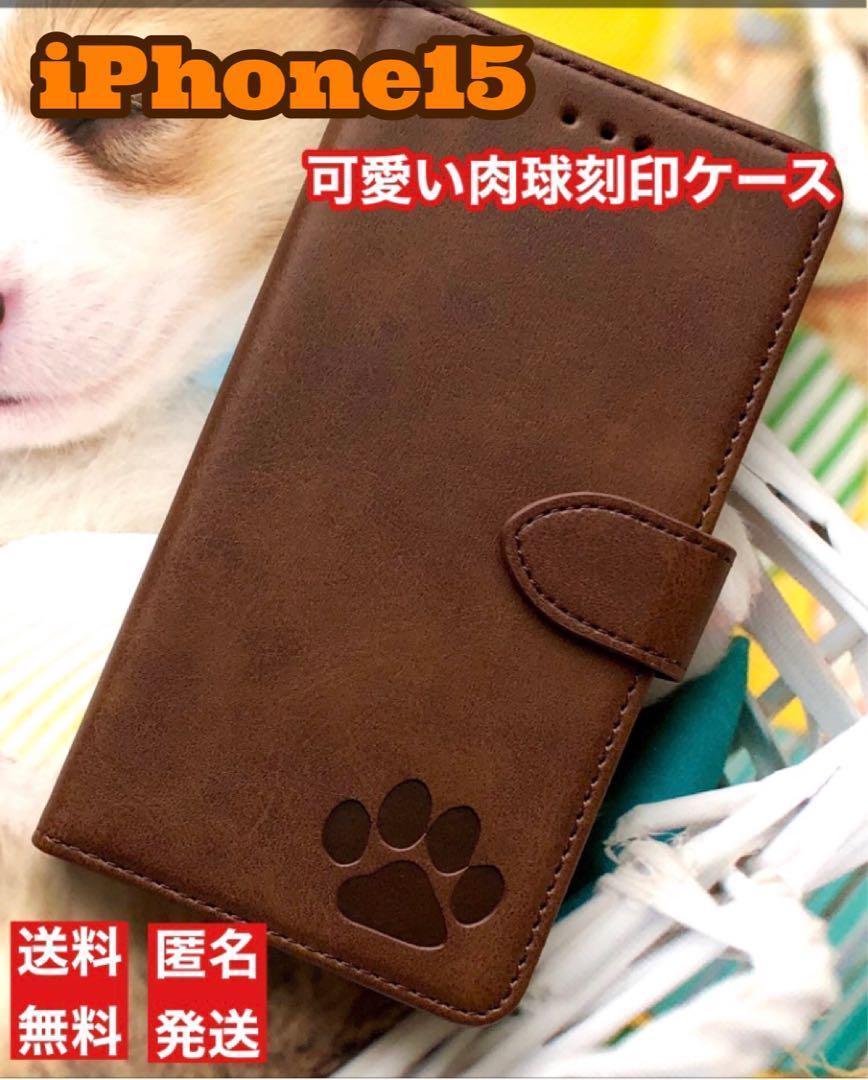 iphone15ケース 可愛い ブラック 肉球刻印 新品 未使用 iphoneケース 手帳型ケース 肉球 肉球ケース