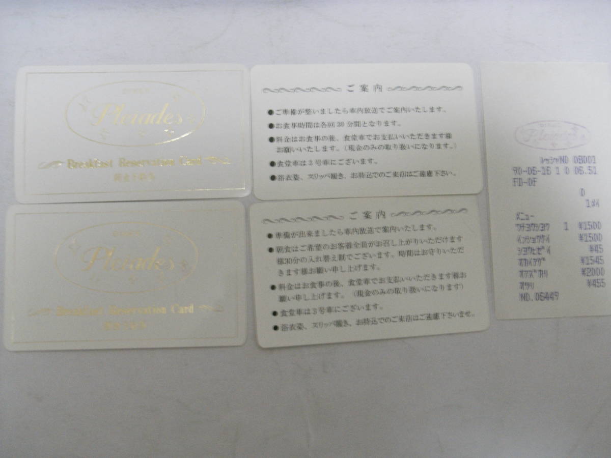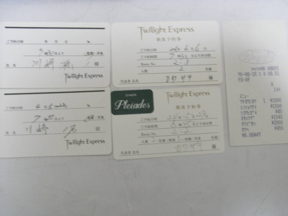トワイライトエクスプレス 朝食予約券4枚(平成4,24,26年,不明1枚)・朝食レシート1枚(1990年) 合計5点