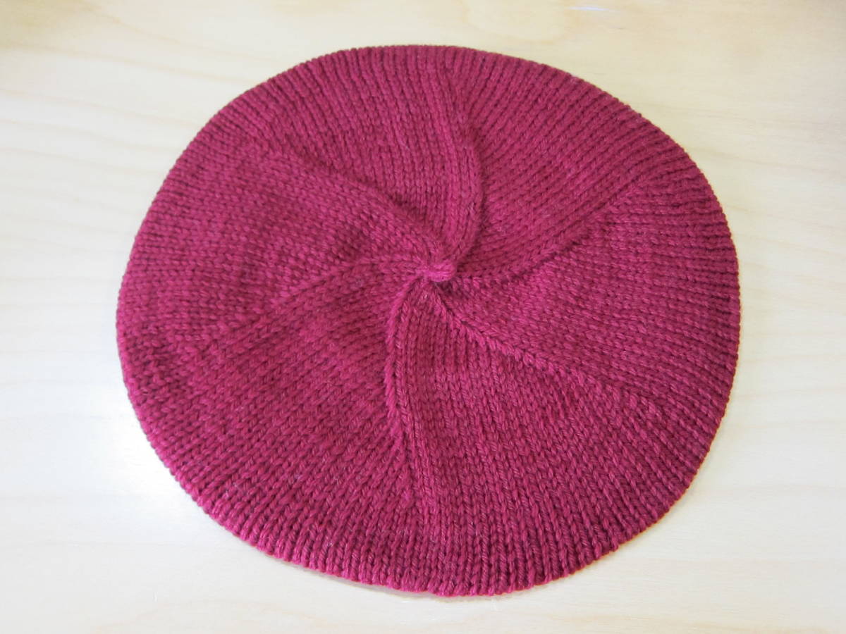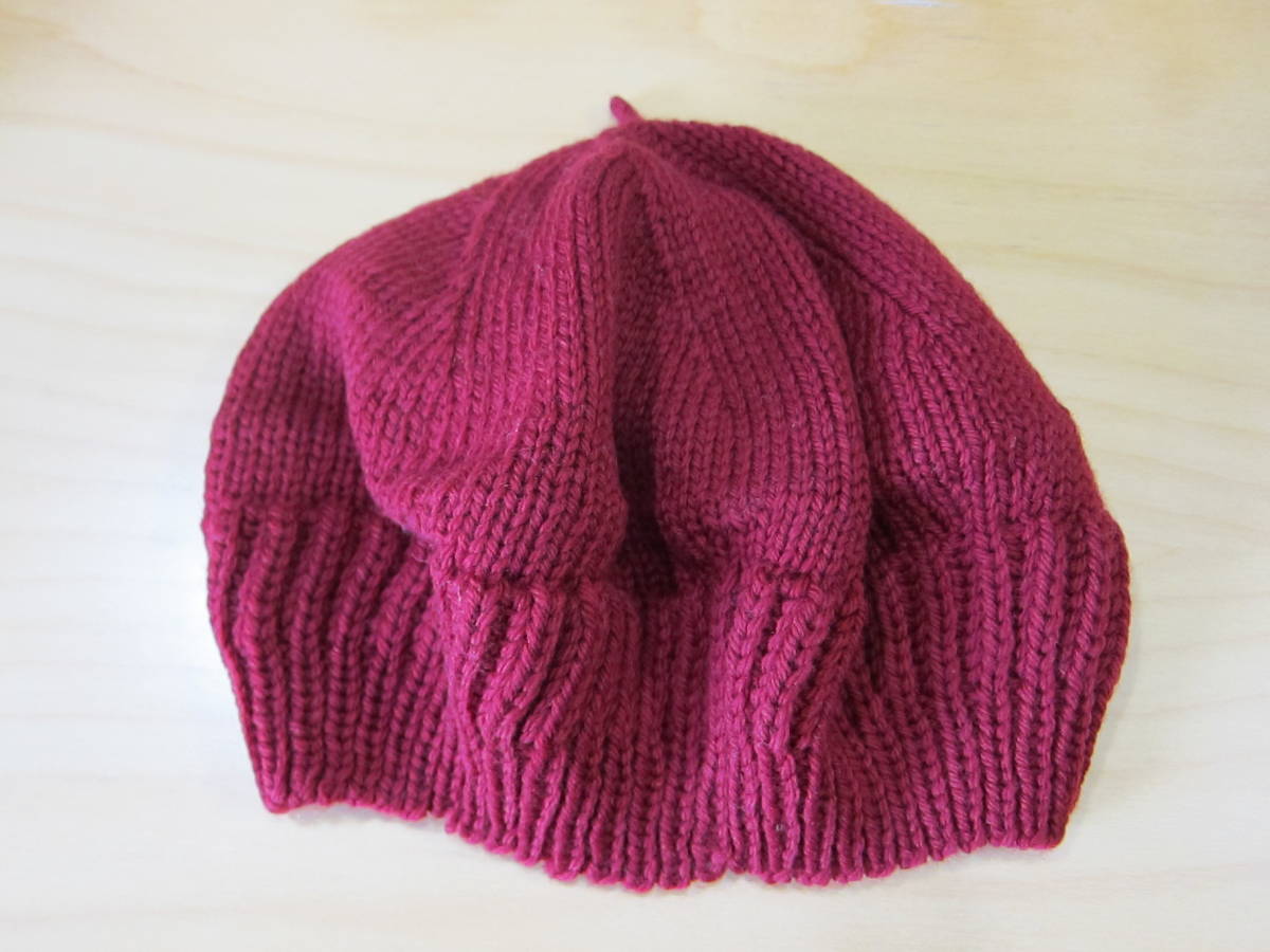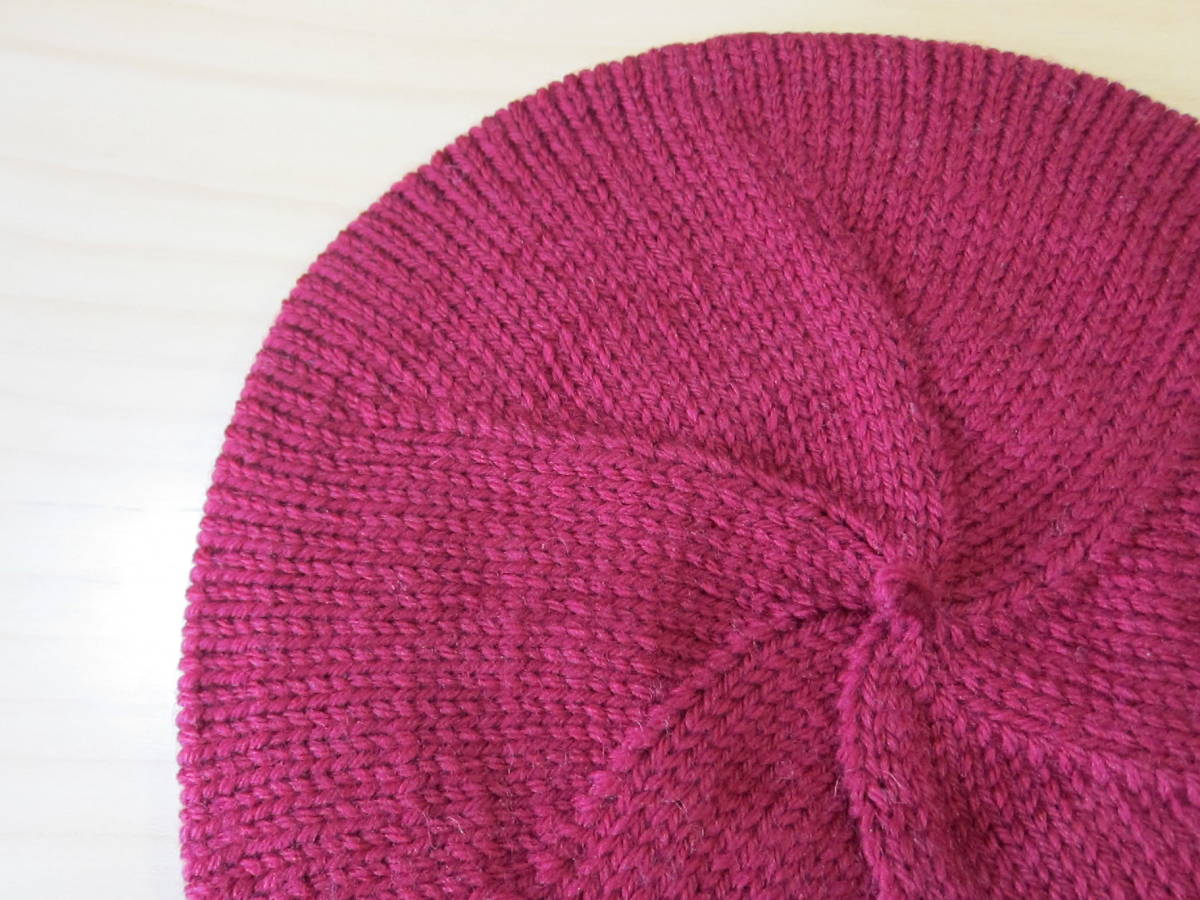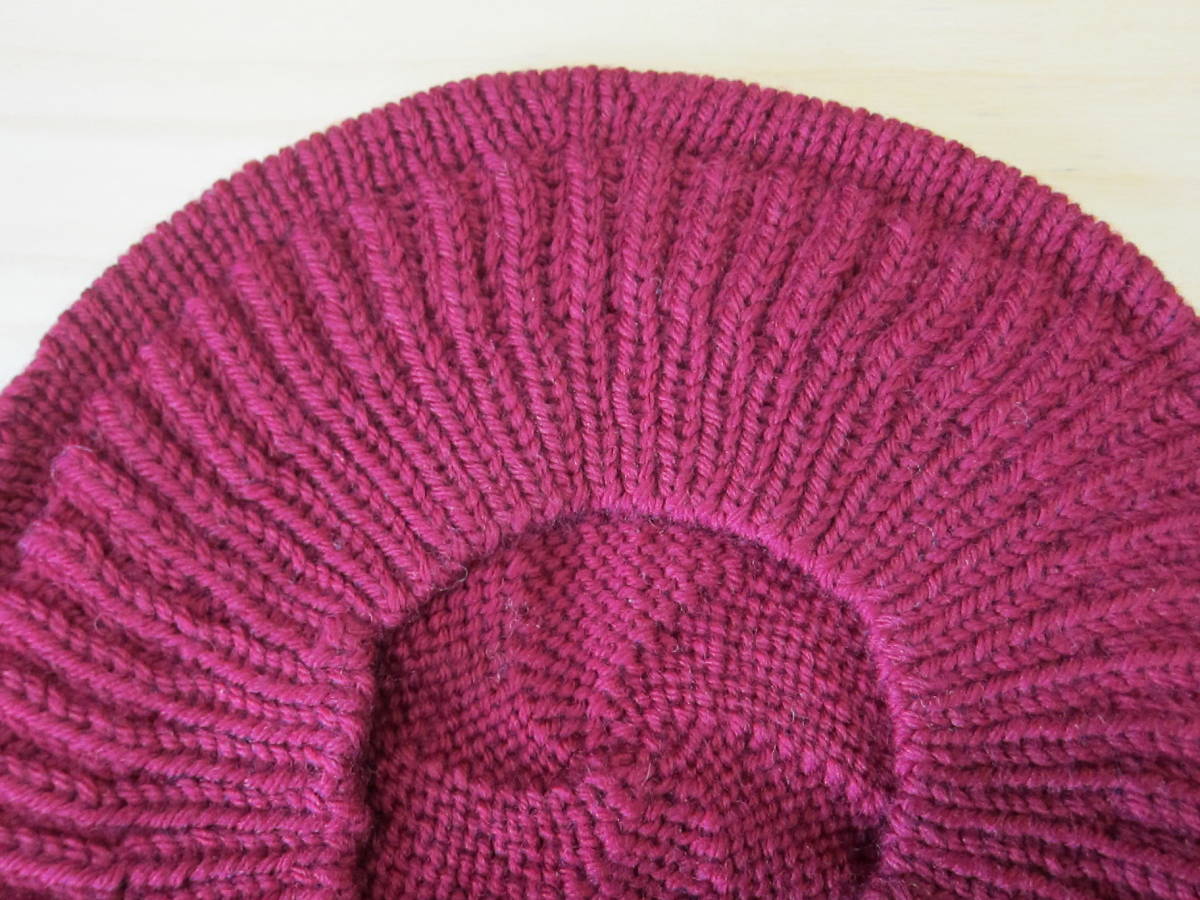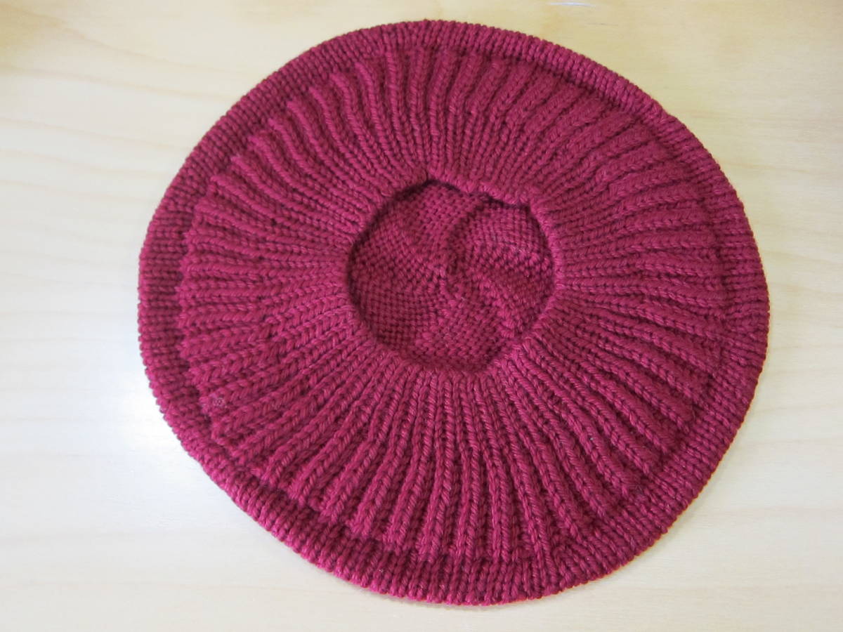 ハンドメイド手編み/メリノウール100%ベレー帽レッド