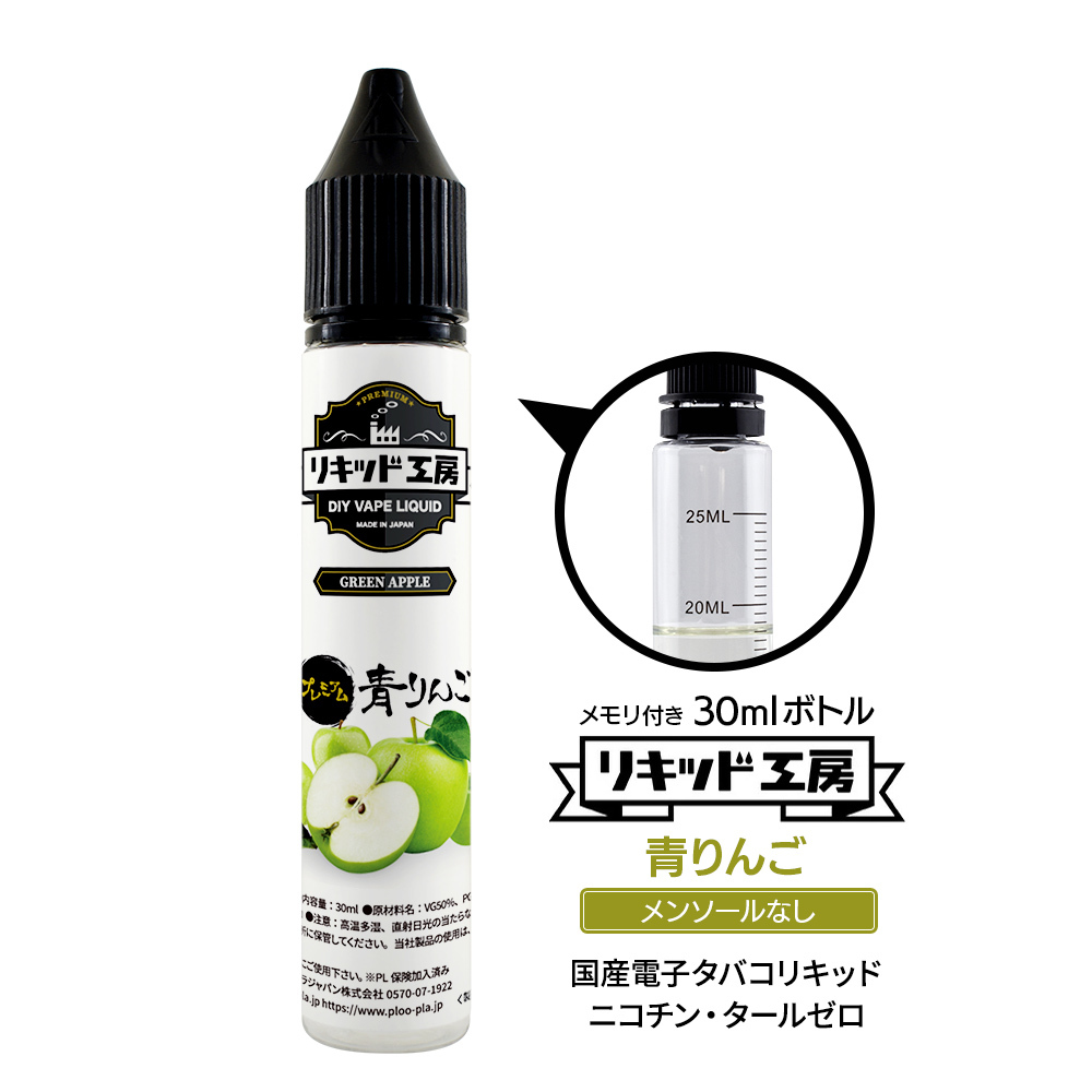 【リキッド工房から30mlシリーズ新登場】爽やかな青りんごの芳醇な香りに上品な甘みと酸味 こだわりのリアルフレーバー(メンソールなし)独自の製法により監修、製造した本格派フレーバーリキッドです。安心安全な国産。日本国内の衛生管理の行き届いた工場で製造しております。※厚生労働大臣指定の食品添加物のみ100%配合 【最高のコストパフォーマンス】お客様のご要望により国産リキッドメーカーとして素材の品質を落とすことなく味、香りにこだわったリキッドの開発に成功しました。そのままでも十分にお楽しみいただけますし、他のフレーバーや香料等と混合して自分好みの味に仕上げることもできます。<セット内容>リキッド工房 プレミアム 青りんご 1本<商品仕様>■ボトルサイズ:30ml■ボトルタイプ:プラスチックボトル(0.5ml単位目盛付き)■成分:食品用グリセロール純度99.7%・食品用プロピレングリコール99%・食品用香料■混合比率:VG50%PG50%■香料:ニコチン・タール・有害物質:なし■日本食品分析センター検査済み:発がん性物質検出されず※チャイルドロックキャップです。