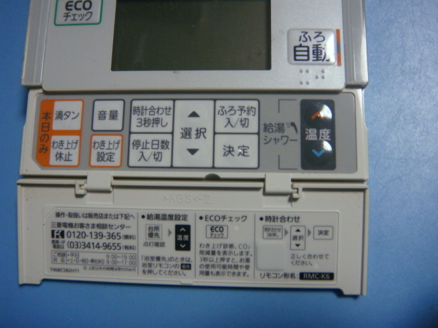 RMC-K6 MITSUBISHI 三菱 DIAHOT 浴室リモコン 給湯器 送料無料 スピード発送 即決 不良品返金保証 純正 C4179