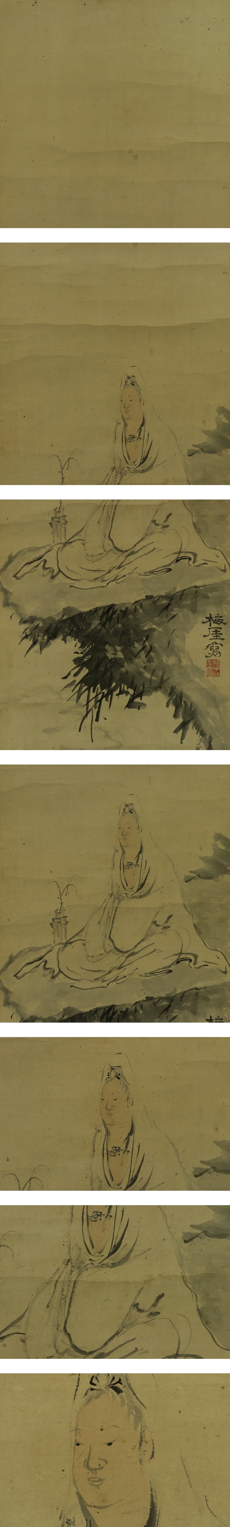 | №2308079【真作】十時梅厓【岩上観音】◆紙本◆合箱◆掛軸 | |