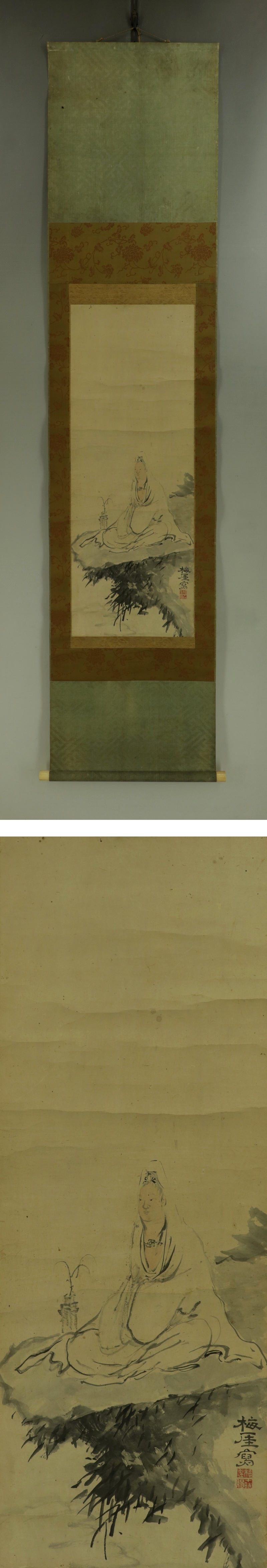 | №2308079【真作】十時梅厓【岩上観音】◆紙本◆合箱◆掛軸 | |