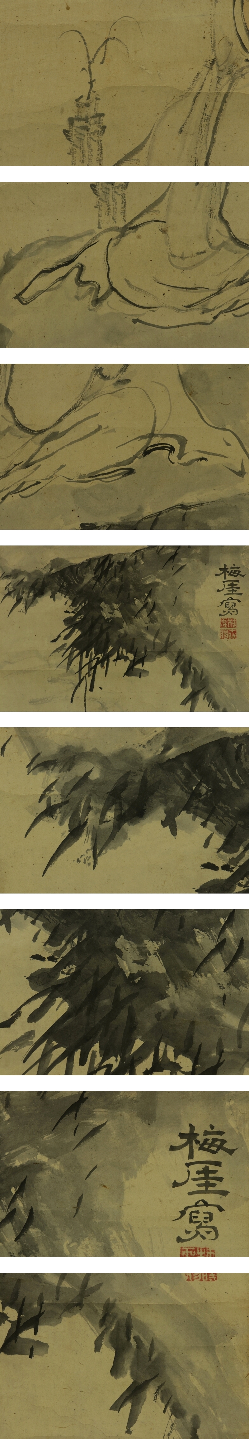 十時梅厓 ととき-ばいがい(1749-1804) 江戸時代中期-後期の儒者。 寛延2年生まれ。伊藤東所に学ぶ。伊勢(三重県)長島藩に仕え,藩校文礼館を再興。 書画,篆刻にも優れた。享和4年1月23日死去。56歳。大坂出身。 名は業,賜。字は季長,子羽。通称は半蔵。別号に清夢軒。著作に「天臨閣娯観」「清夢録」など。 本紙は、染み、汚れ、強い折れ、皺、破れ、ヤケがあります。 表装は、染み、汚れ、折れ、皺、虫食い、破れ、ほつれ、修理痕、ヤケ、くすみ、 軸先にヒビ、軸紐に劣化があります。 【サイズ】 作品 横約30.5cm×縦約84cm 表装 横約42cm×縦約184cm |