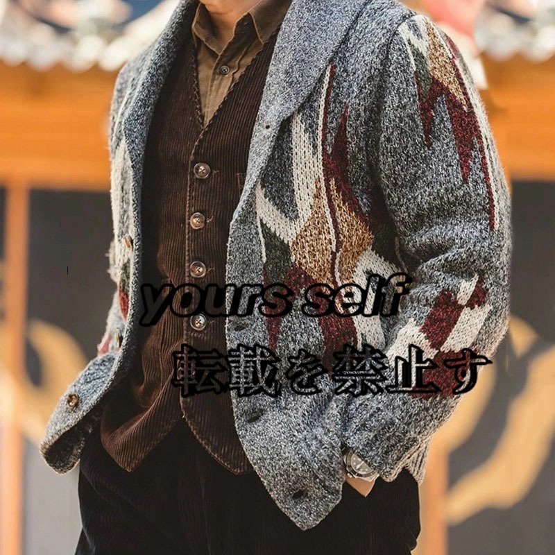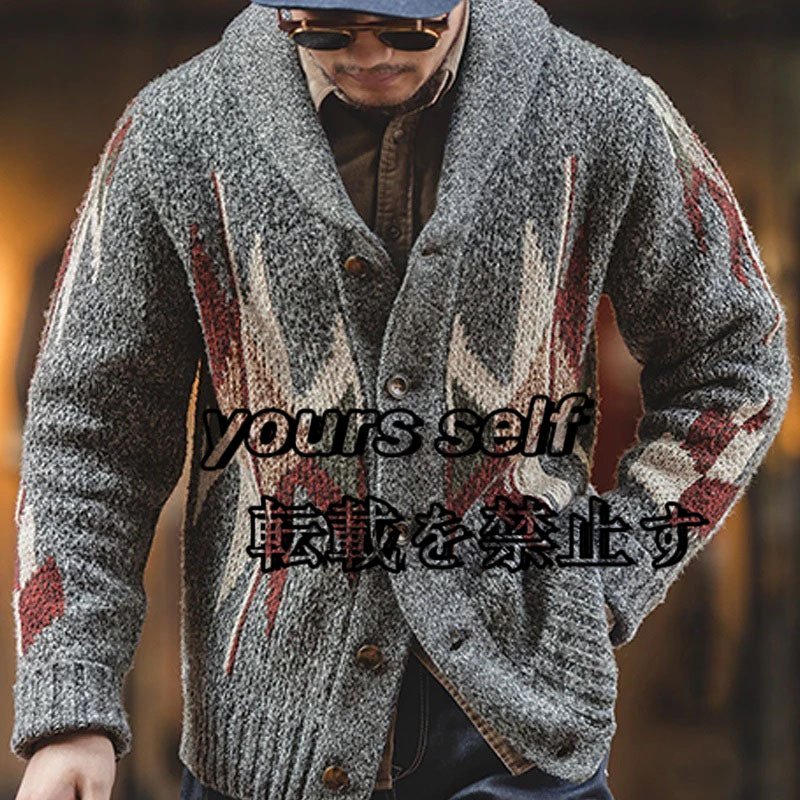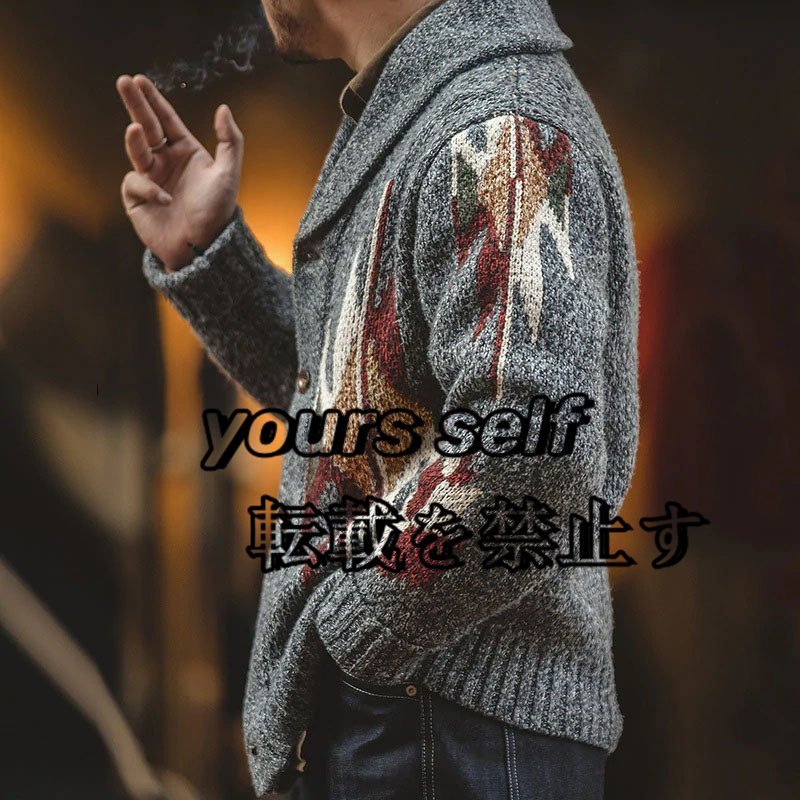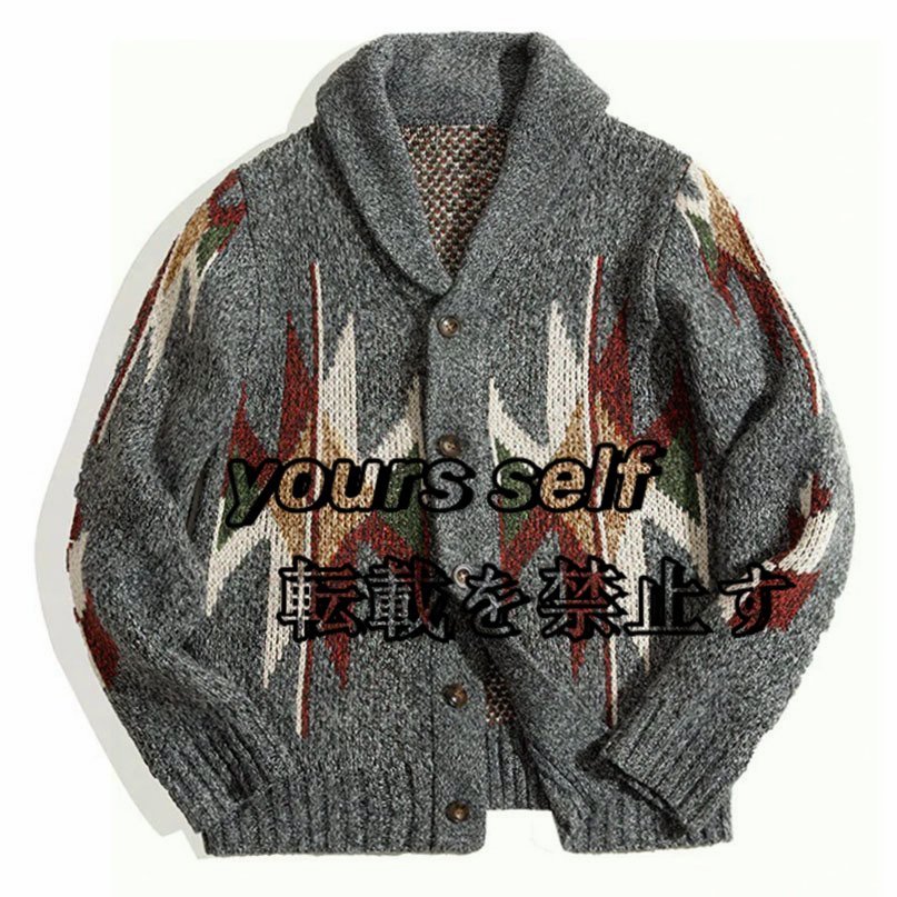 上品 秋冬 ナバホ柄ショールカラー厚手カーディガン◇へちま襟セーター◇長袖 ニット ★ グレー/Sサイズ