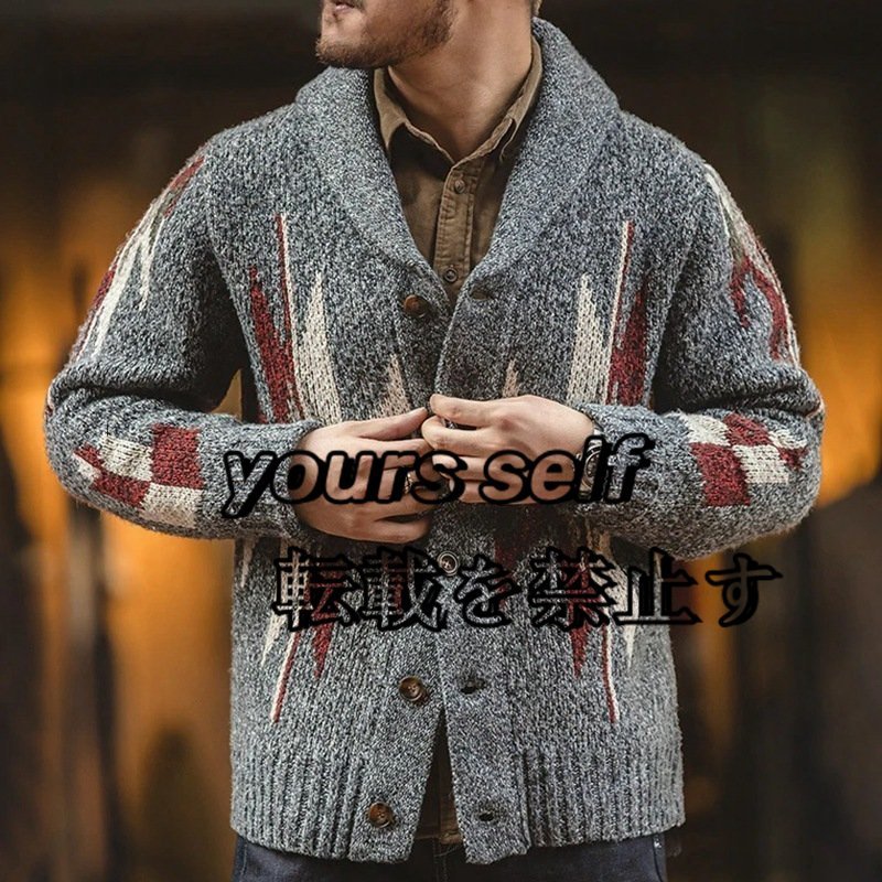 上品 秋冬 ナバホ柄ショールカラー厚手カーディガン◇へちま襟セーター◇長袖 ニット ★ グレー/Sサイズ b1817