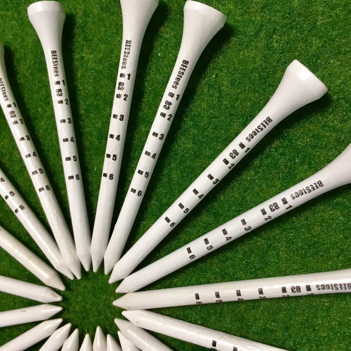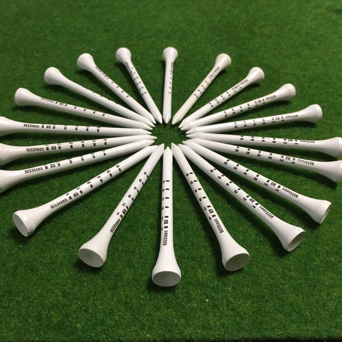 木製83mm、白地に黒色で目盛が付いていますので、いつも同じ高さでティーアップができます\( o )/