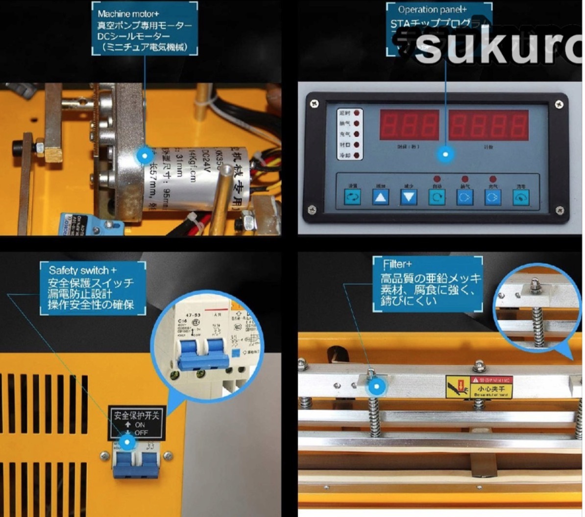 ★状態:新品未使用 【亜鉛メッキ材】亜鉛メッキの材料を使って加工し、腐食に強く、さびにくく、耐久性が高いです。 【マザーボードとコントロールパネル】良いマザーボードを使用し、安定したパフォーマンス、使用寿命が長いです。パネルはデザインはシンプルで、より簡単な操作。 【安全保護スイッチ】漏電防止設計、操作と使用の安全を保障する。 【真空計装備】専用の真空計を装備しているため、真空状態が一目でわかります。インフレータブル/フットペダルインターフェースも装備しているので、より便利な操作。 【3つのモード+カウント機能】真空+シール、単独のシールと空気充填+シール3つのモードが選択あります。カウント機能は大量の製品のシール時の数量の統計に便利です。 型番:DZQ-500 TE 電源電圧:110V 包装速度:5-15回/分(手作業で協力する必要があります) ポンプパワー:120 W シールパワー:950 W サイズ:70*48*56 cm 重さ:55 kg シールサイズ:500*8mm
