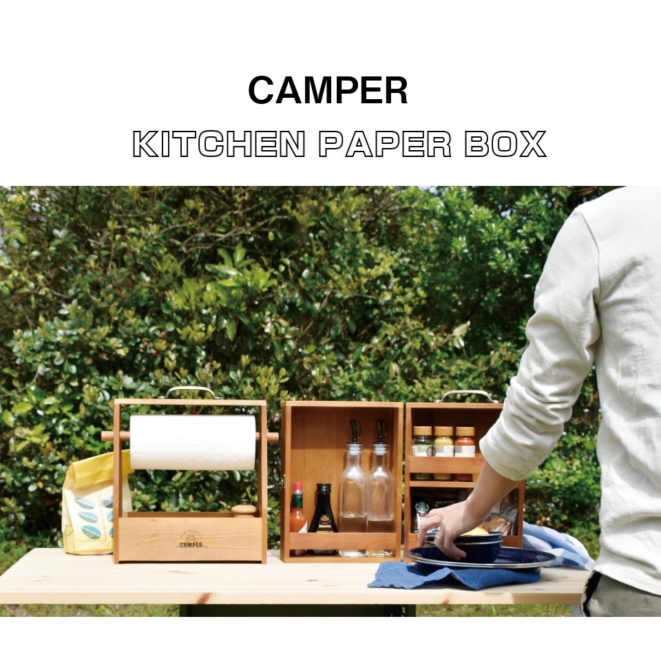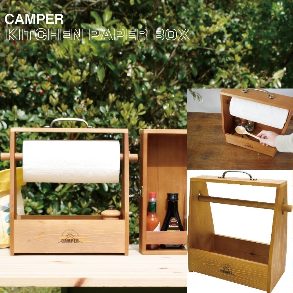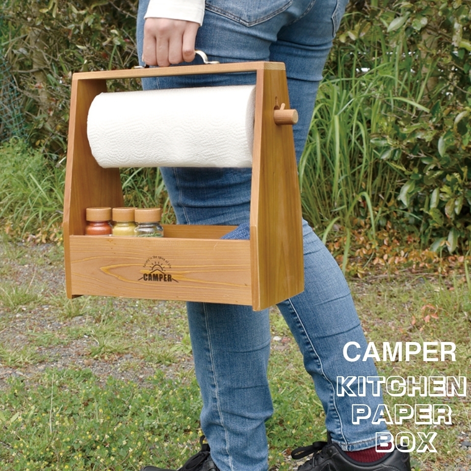 アウトドアで必須のキッチンペーパーをおしゃれに収納できるウッドボックス