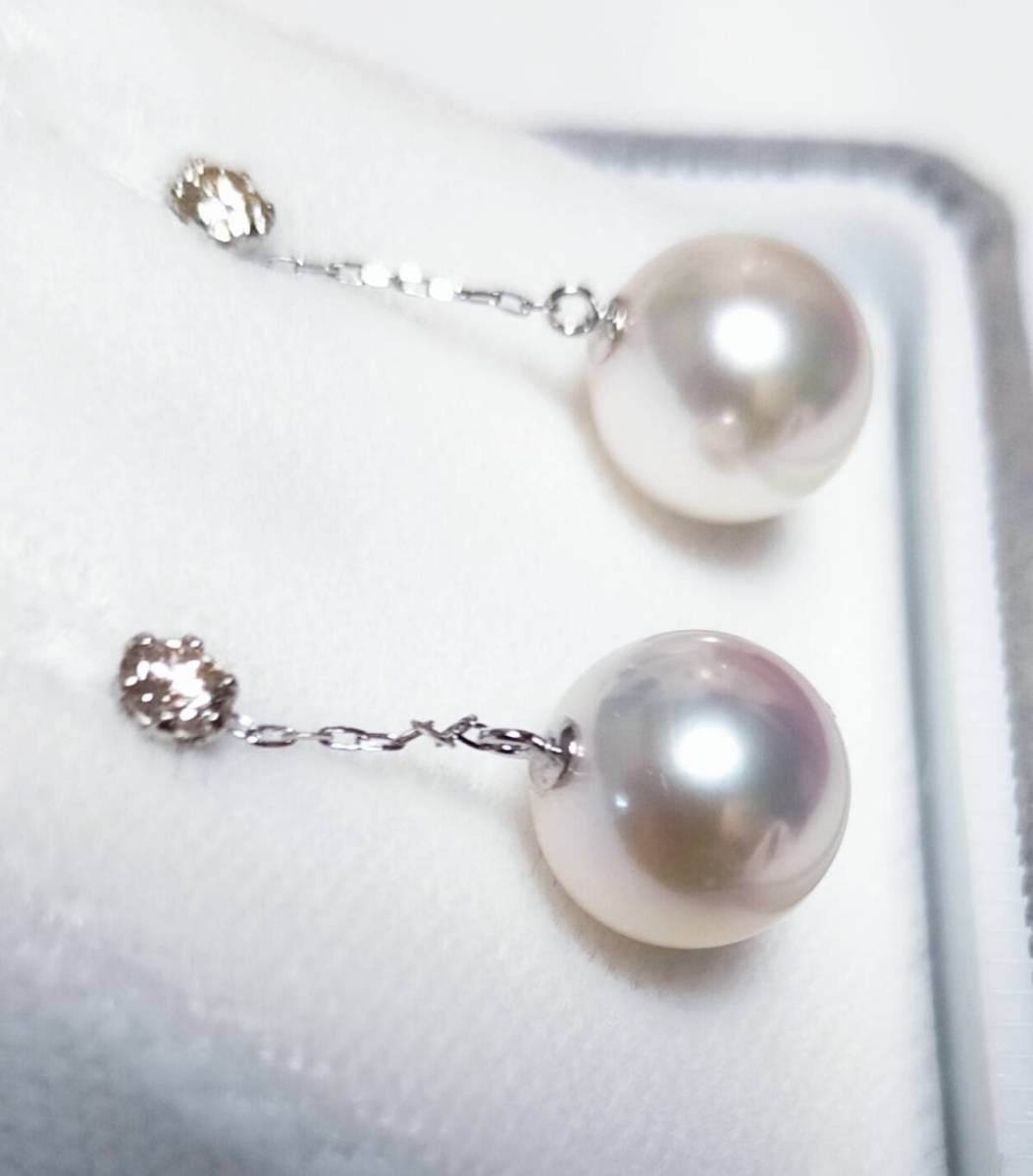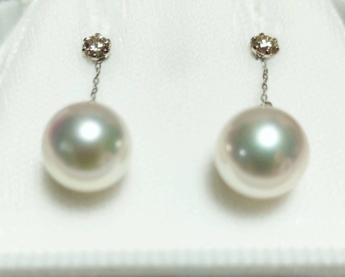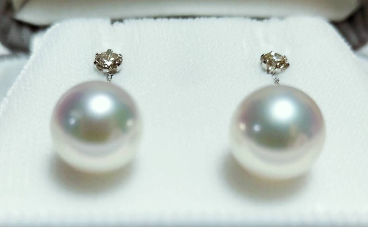 ダイヤモンドの輝くとっても素敵なあこや真珠のブラピアスです。