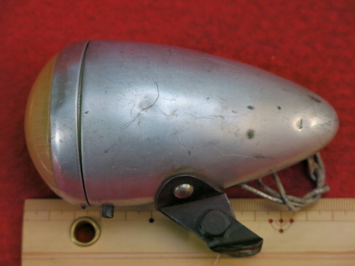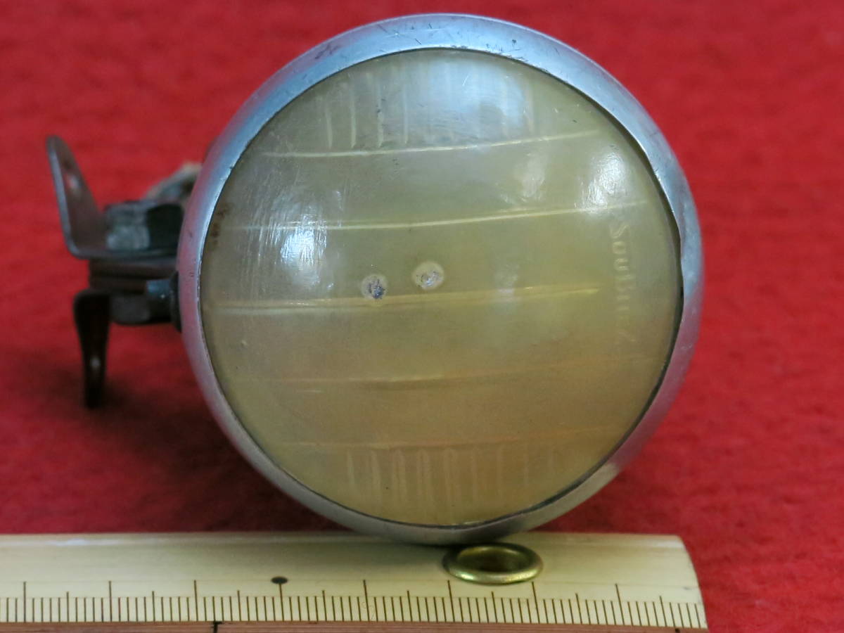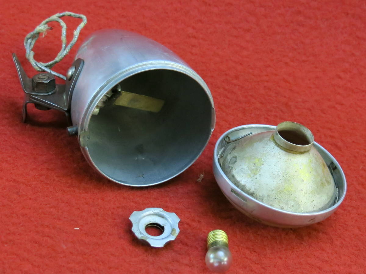 あちこちにキズ、腐食、錆び、凹み有り。プラスチックレンズ。レンズに曇り、キズ有り。球は、導通が有りません(切れています)。