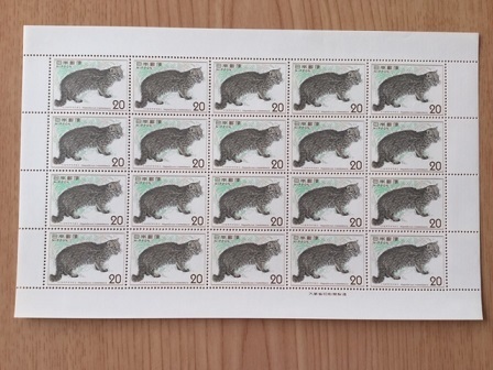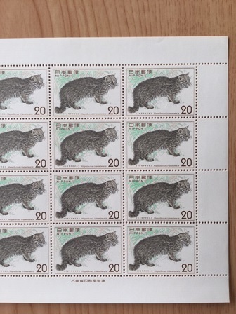 自然保護シリーズ 第1集 哺乳類 イリオモテヤマネコ 1シート(20面) 切手 未使用 1974年