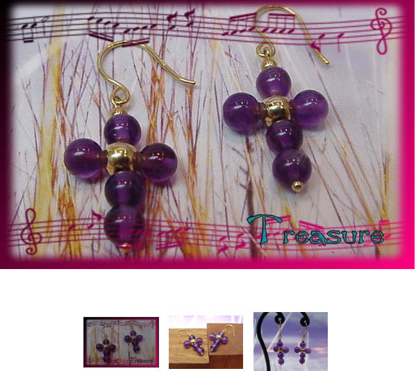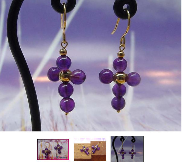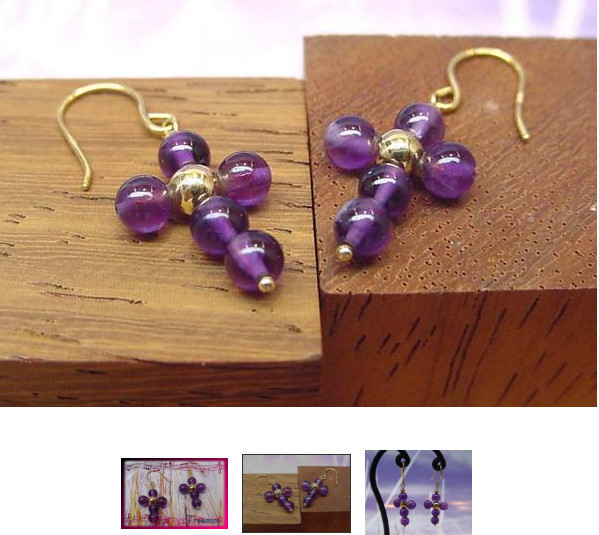◆98【T・B】K18/YG個性的なクロス・アメシストピアスP14◆