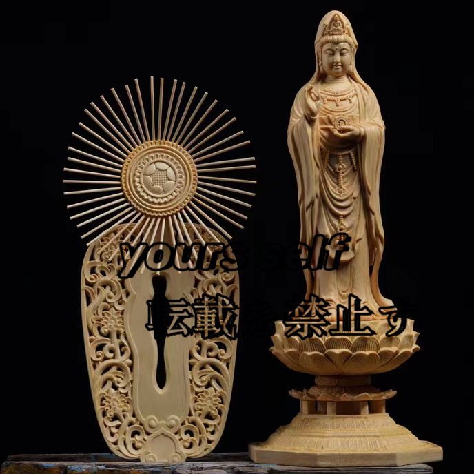 大好評 大型 観音菩薩立像 精密細工 極上彫 木彫仏像 観世音菩薩像