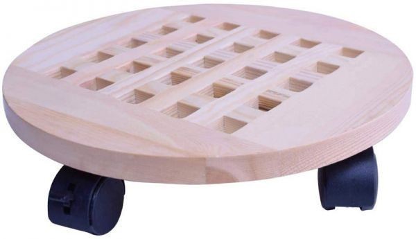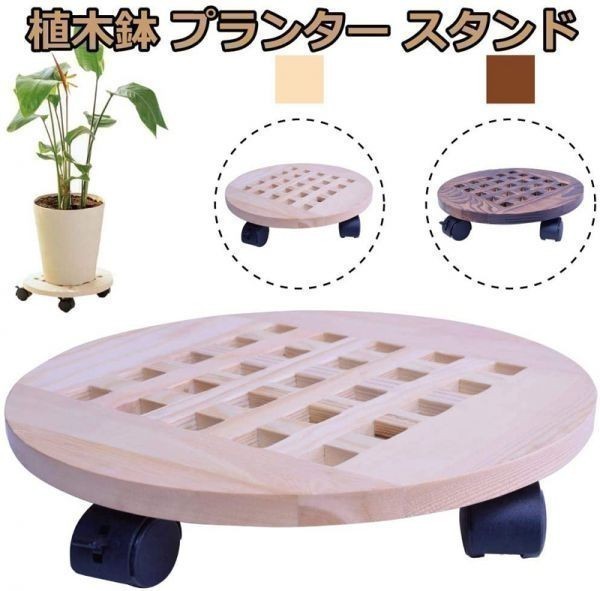 【 送料無料 】Freell ◆木製 プランタースタンド 植木鉢台 鉢置台 花台 360度 可動式 ストッパー付き 30cm 丸型 (ナチュラル)☆