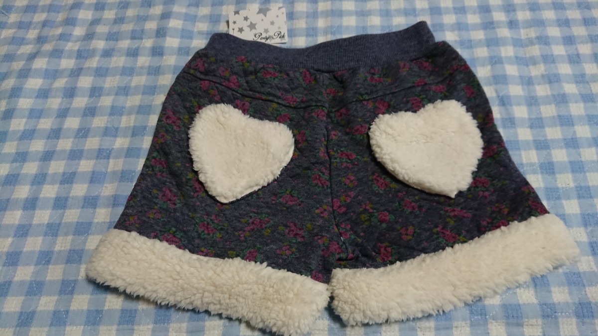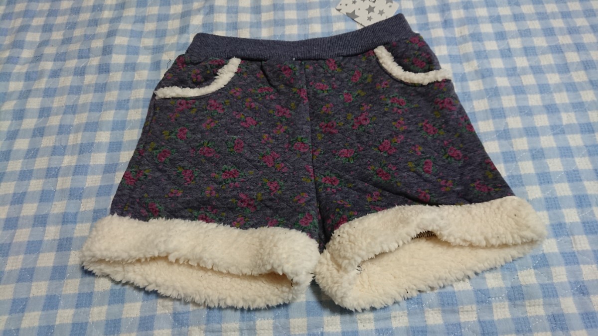 〇♪163☆未使用・保管品☆裾ボアニットキルトショートパンツ 青140①