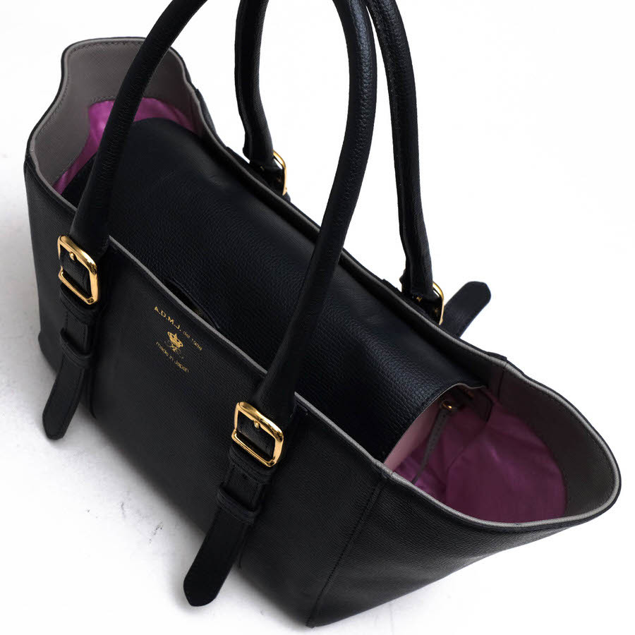 まるでクルーザーのような優雅なフォルムのトートバッグモデル。キオリーノテクノロジー(CHIORINO TECHINOLOGY)社のダノビオ(DANUBIO)といわれる革面にフィルムを貼ることで、水や汚れにも強い素材を採用。ハンドルの長さを調整することができるので、お召し物の袖口を気にせず、通年お使いいただけます。 |