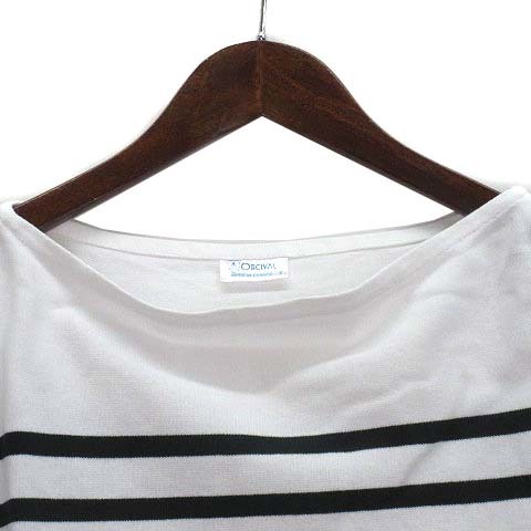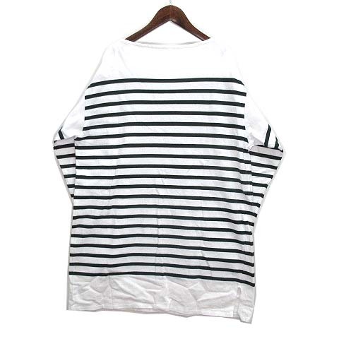 オーチバル ORCIVAL オーシバル ラッセル ボーダー ビッグシルエット チュニック カットソー 長袖 グリーン ホワイト 7 E22 02195074 美品