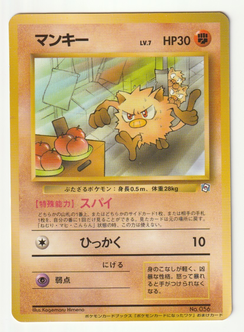 旧裏面「マンキー」(LV.7 No.056)コーティング加工・難あり・ポケモンカードブックス「ポケモンカードになったわけ」に付属