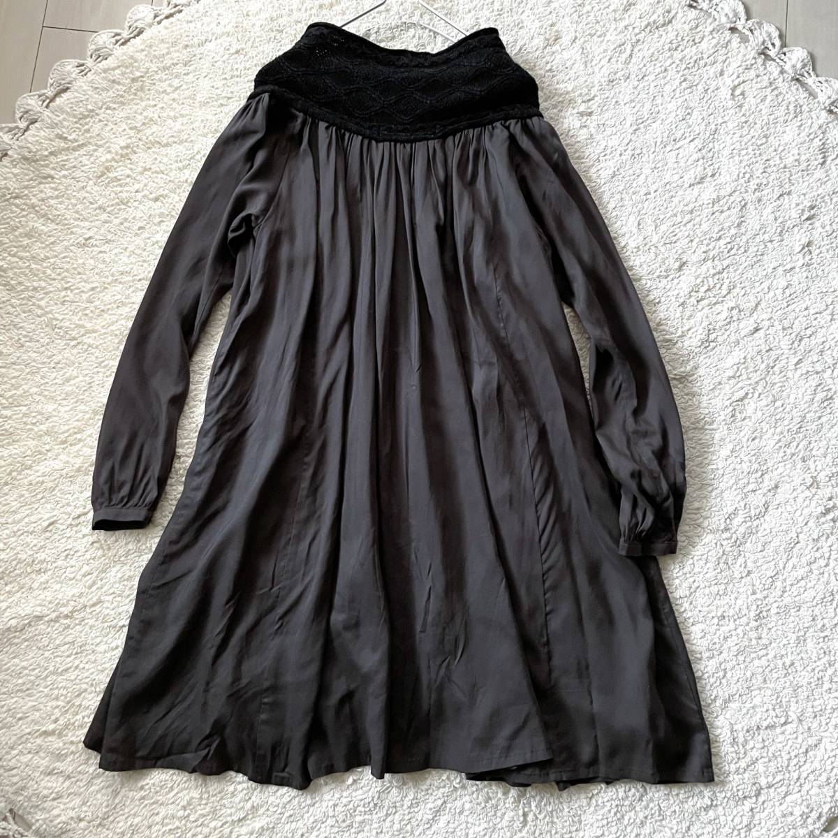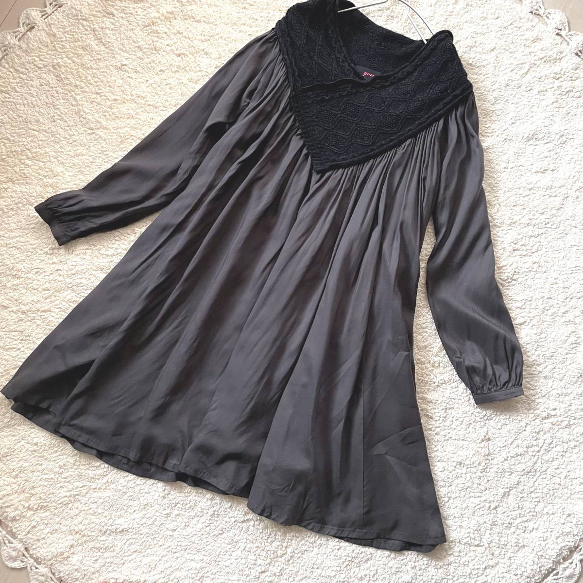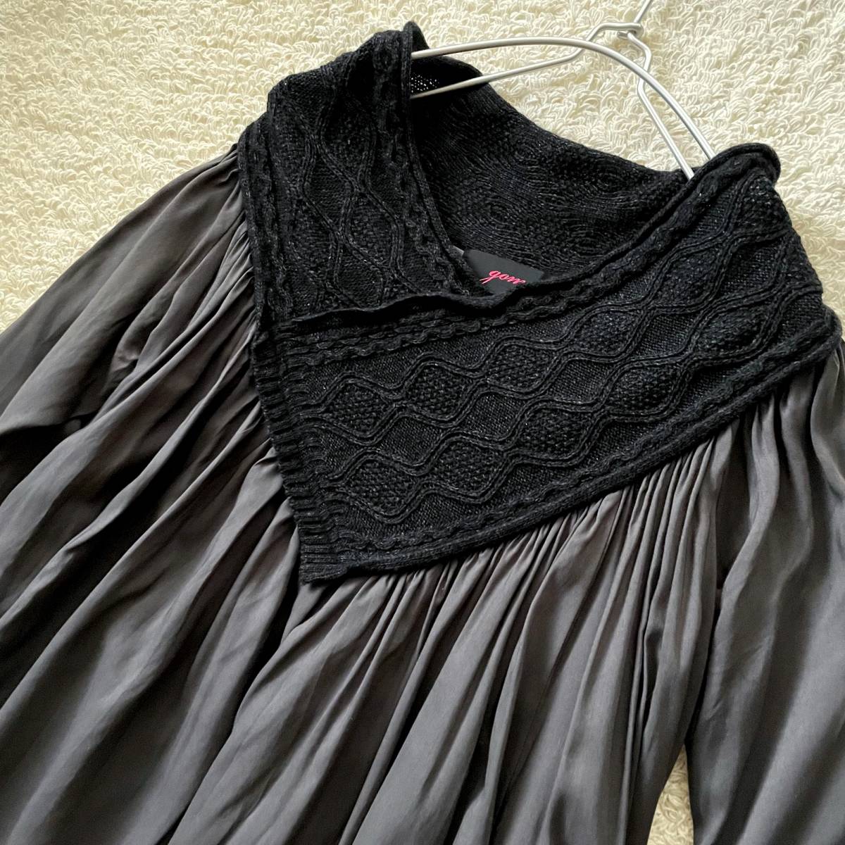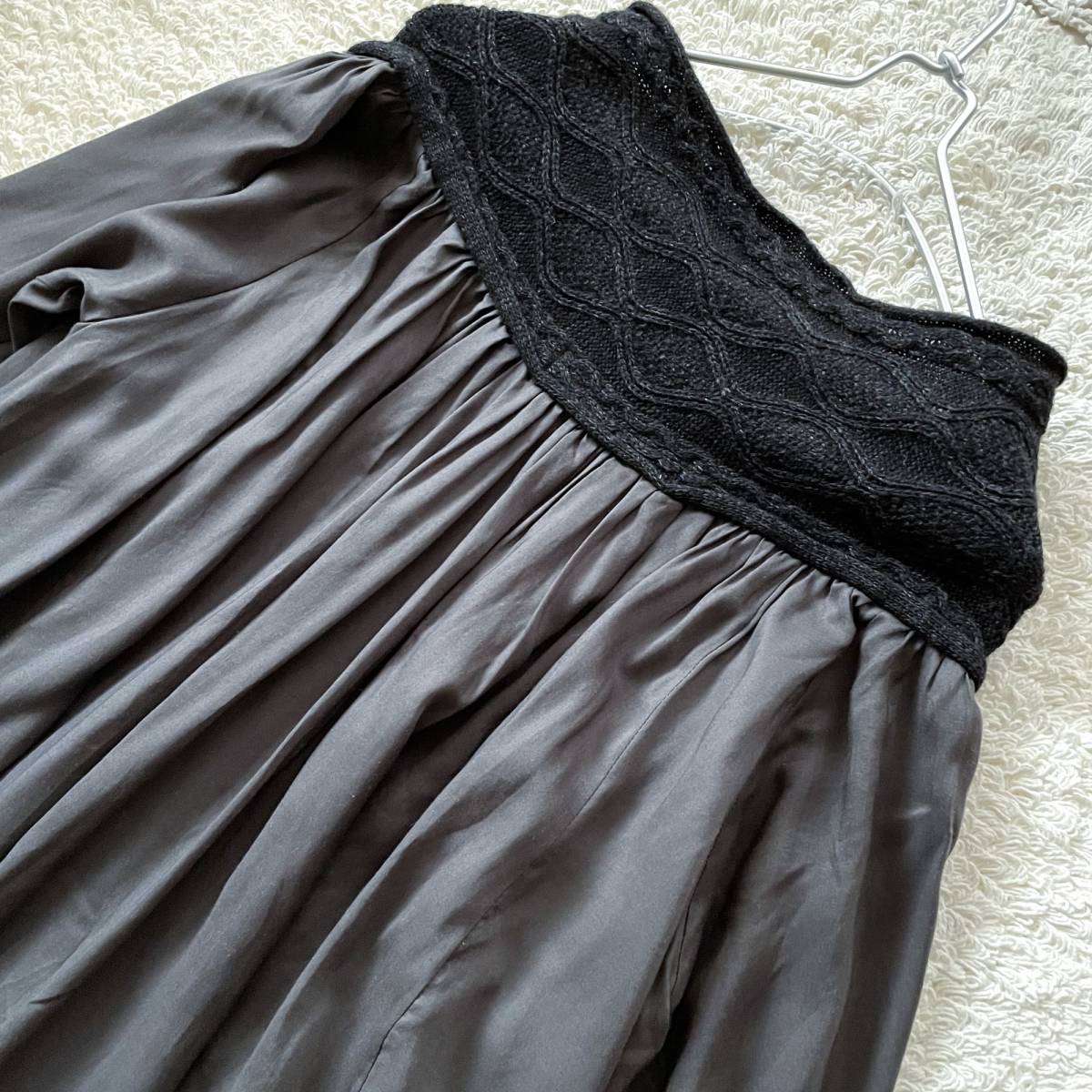 ふんわりとしたフレアワンピースの襟元がニットになっています。