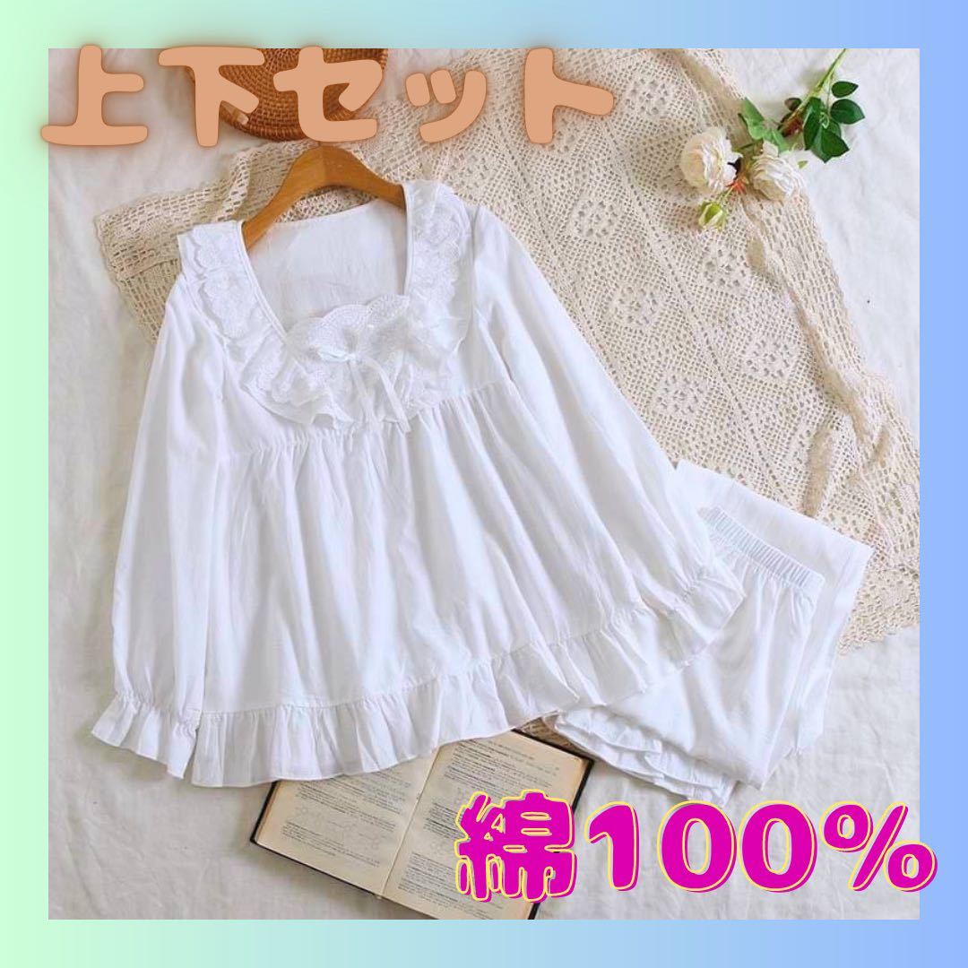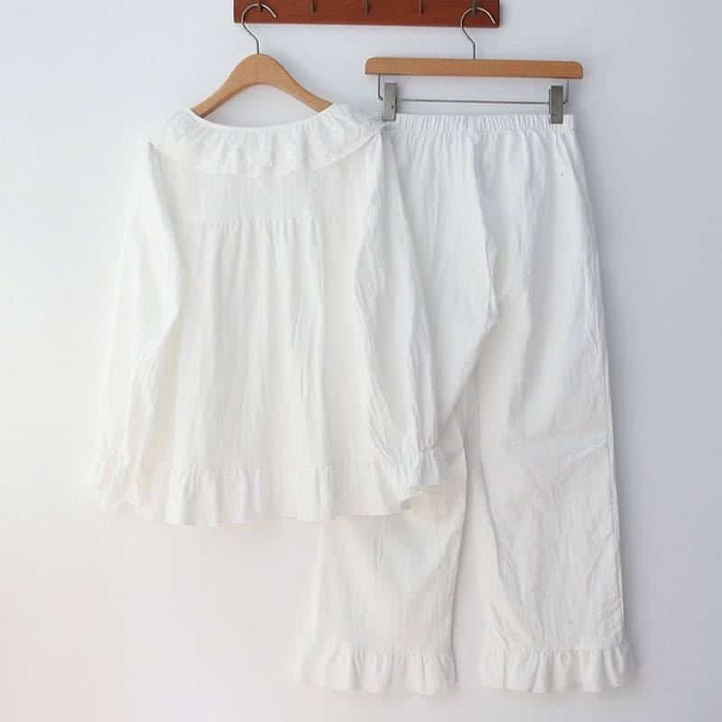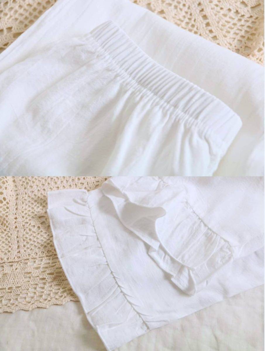 フリルデザイン袖口・トップス&パンツ裾にフェミニンな印象のフリル付き