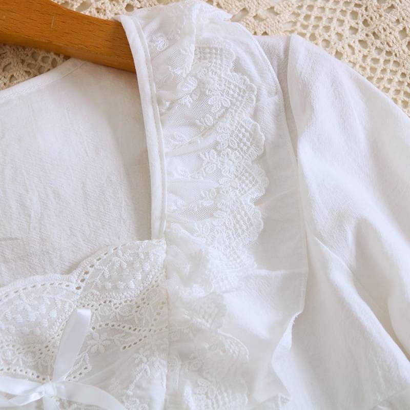 首元ライン華やかなレースとワンポイントのリボン付きでお姫様のように