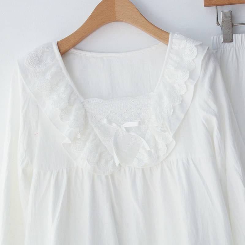 レース×フリルのガーリーなセットアップ。