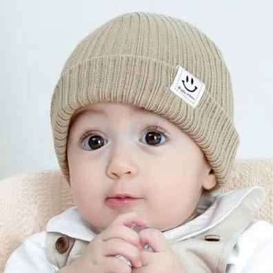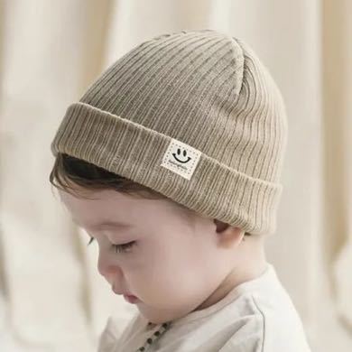 キッズ ベビー 帽子 ベージュ 男の子 ボーイ ガール 女の子 男女兼用 ニコちゃん シンプル 冬 秋 秋冬