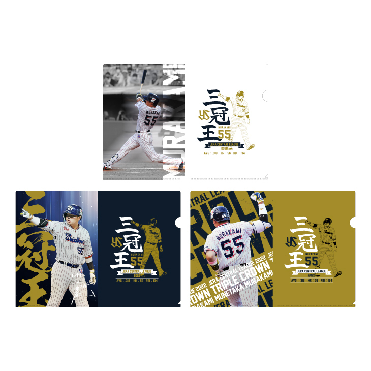 昨年史上最年少で三冠王に輝いた村神様こと村上選手のクリアファイル3点セットです。