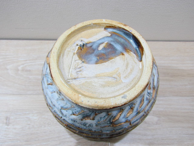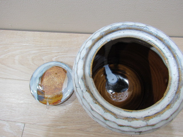 蓋付き焼き物 高さ約17センチ×直径約15センチ 口径約9.2センチ 焼き物 インテリア 入れ物 保存容器 カメ 甕