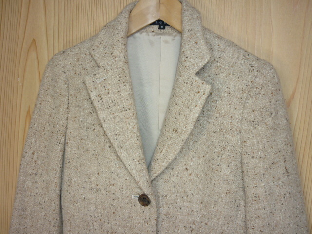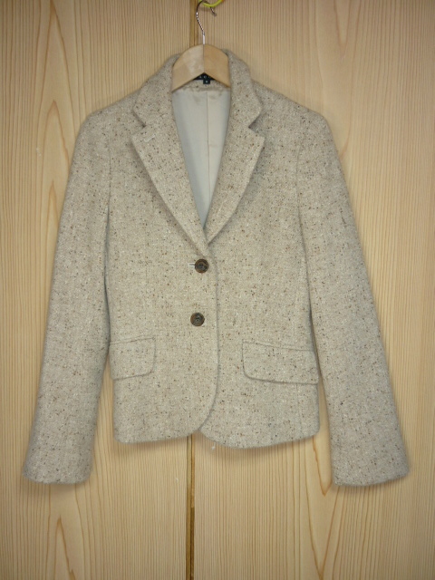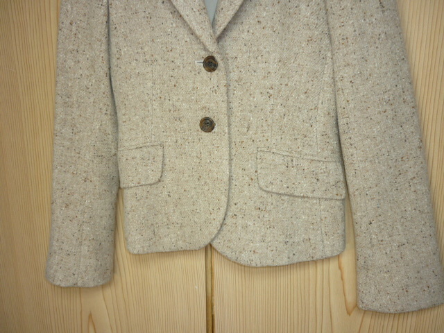 ◆デザイン・・シンプルな2つボタン・テーラージャケット・両側に雨蓋付ポケット・ツイード素材