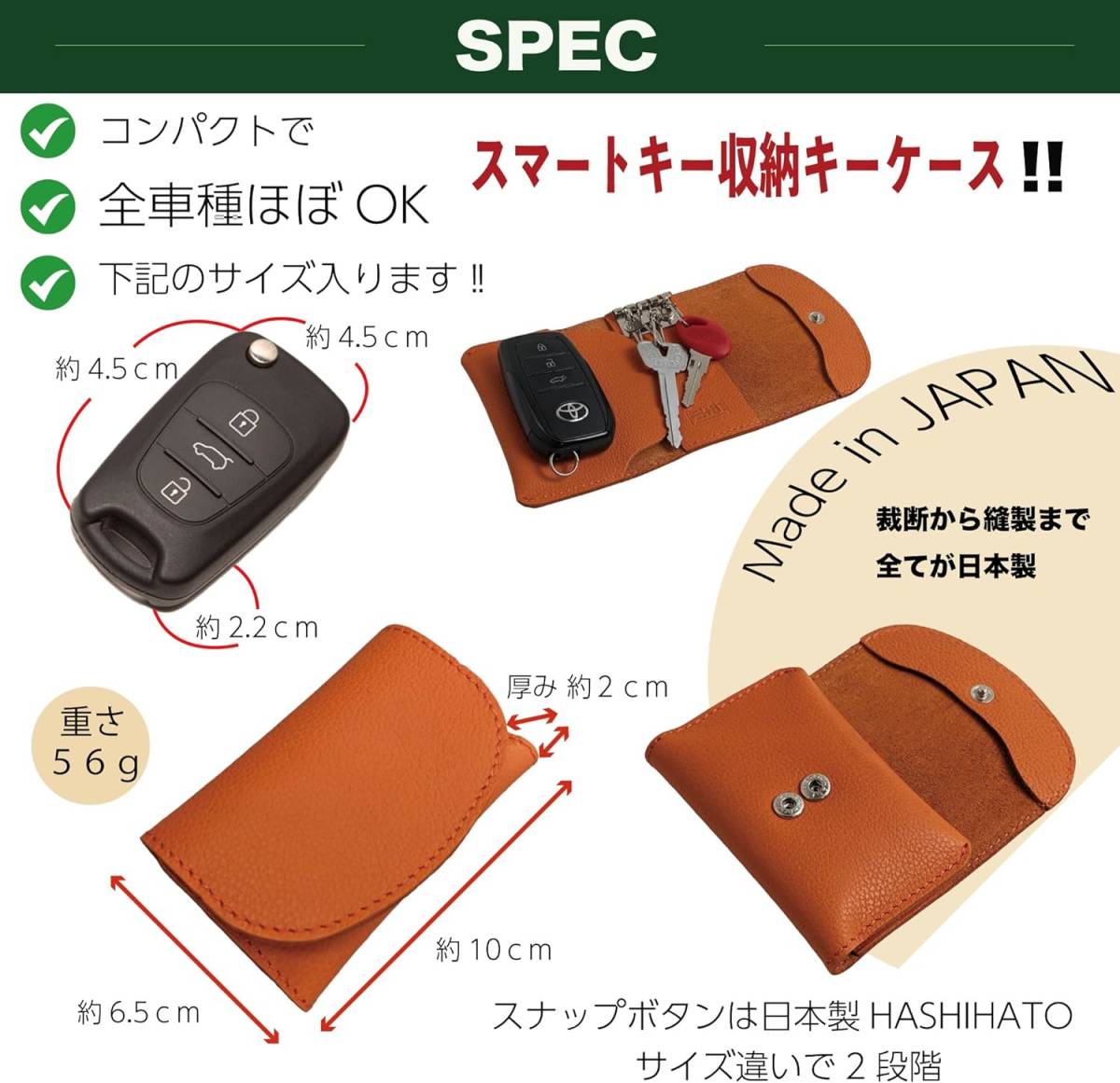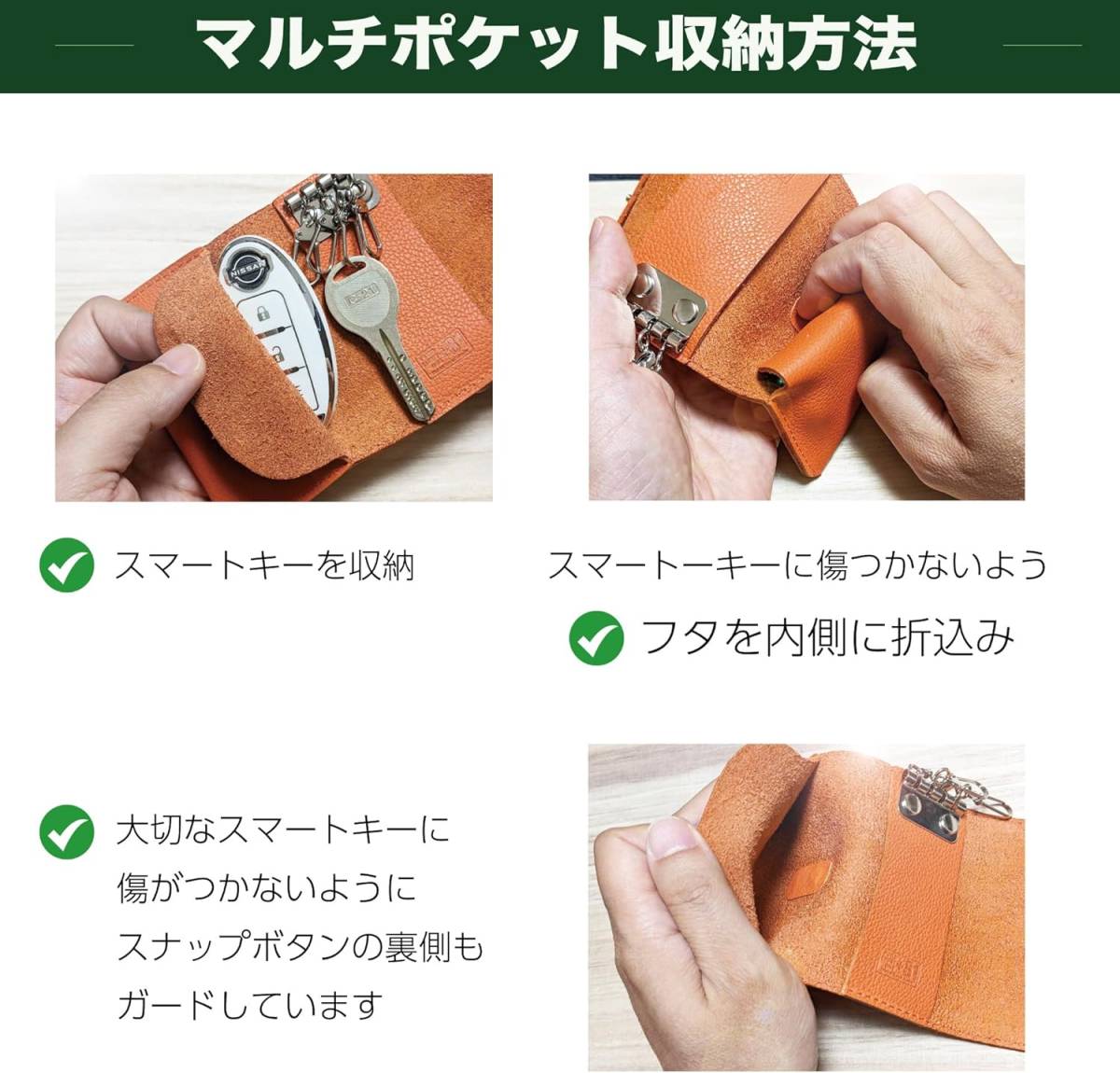 スマートキーケースポケット×1 4連フック付き 2段階スナップボタン スナップボタンは日本製の安全性・信頼性の高いHASI-HATO(ハシハト)使用