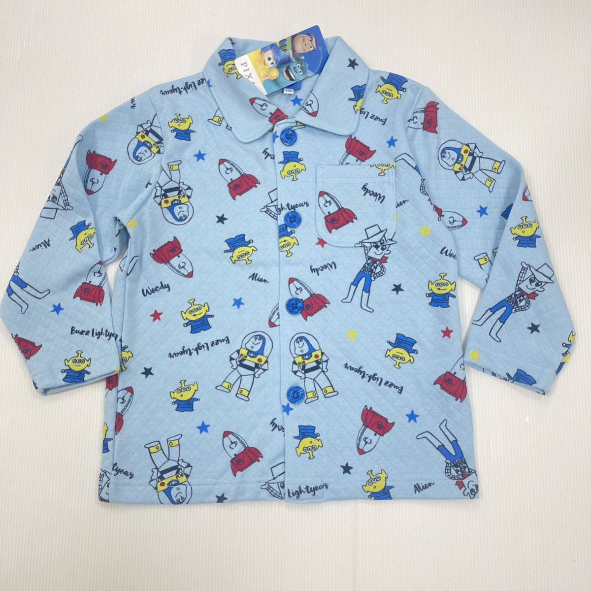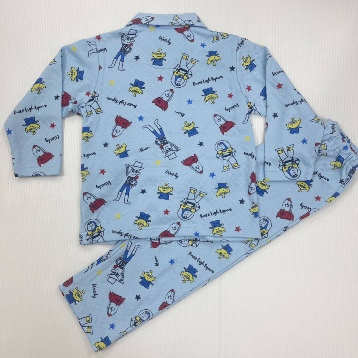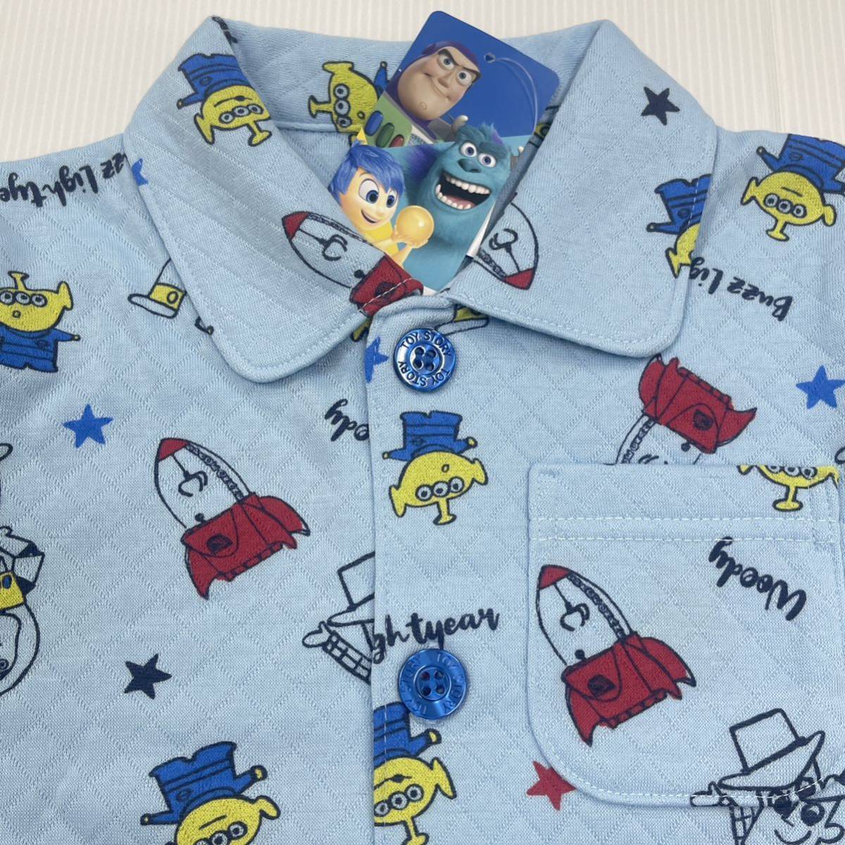 新品61979 トイストーリー 110cm サックス ニットキルトシャツ長袖パジャマ 男子 キッズ ボーイズ バズライトイヤーウッディディズニー