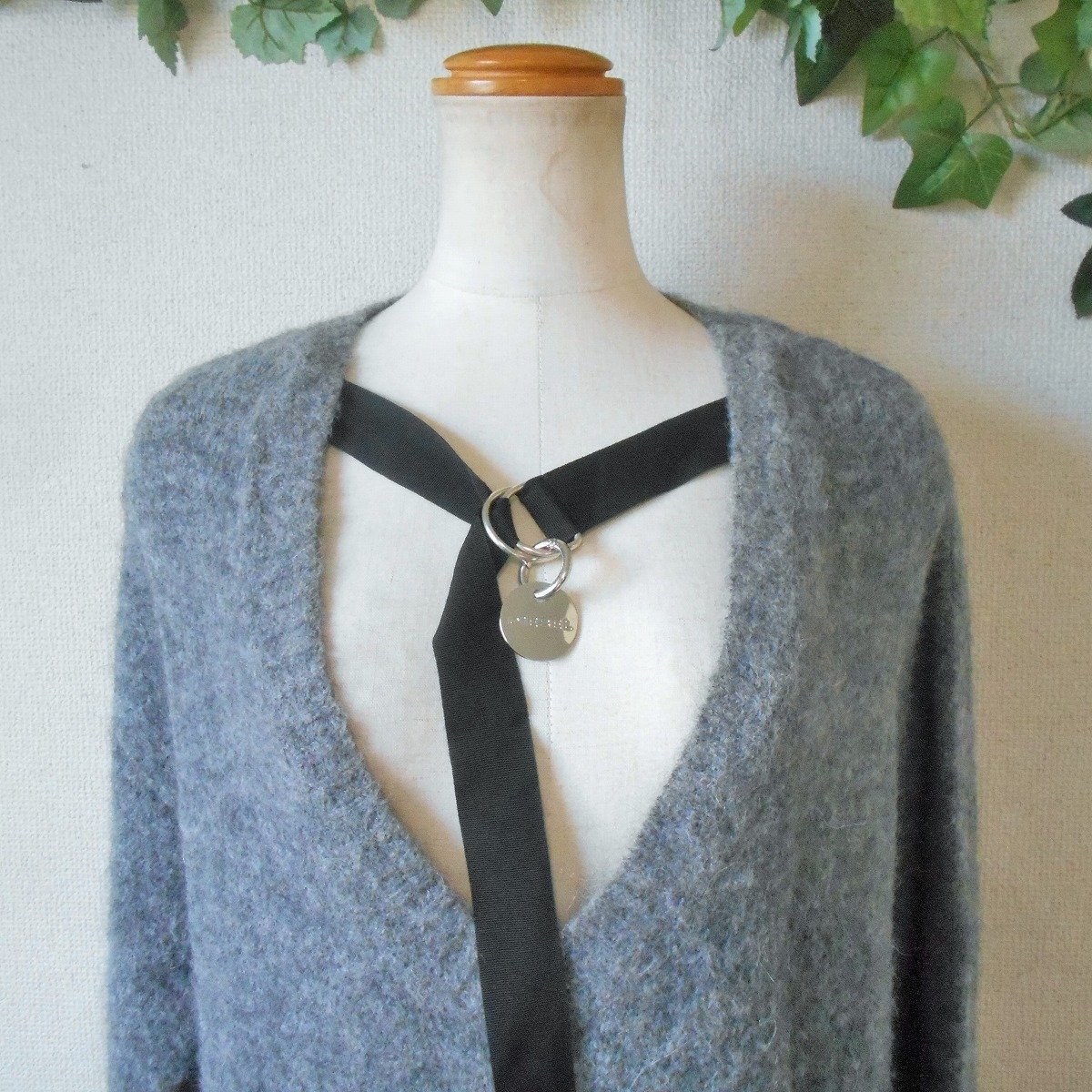 首元にはグログランテープに金属のロゴが付いた、とっても素敵な一着です。