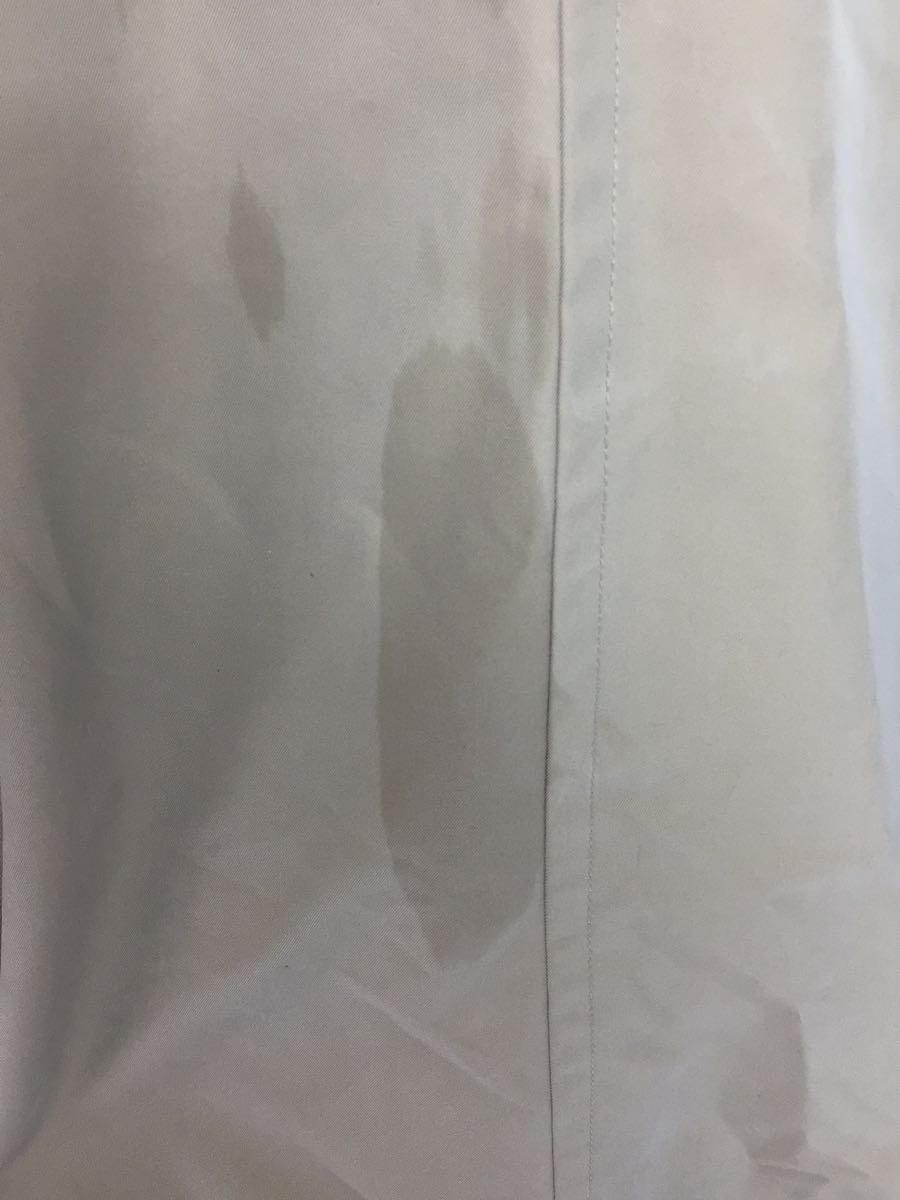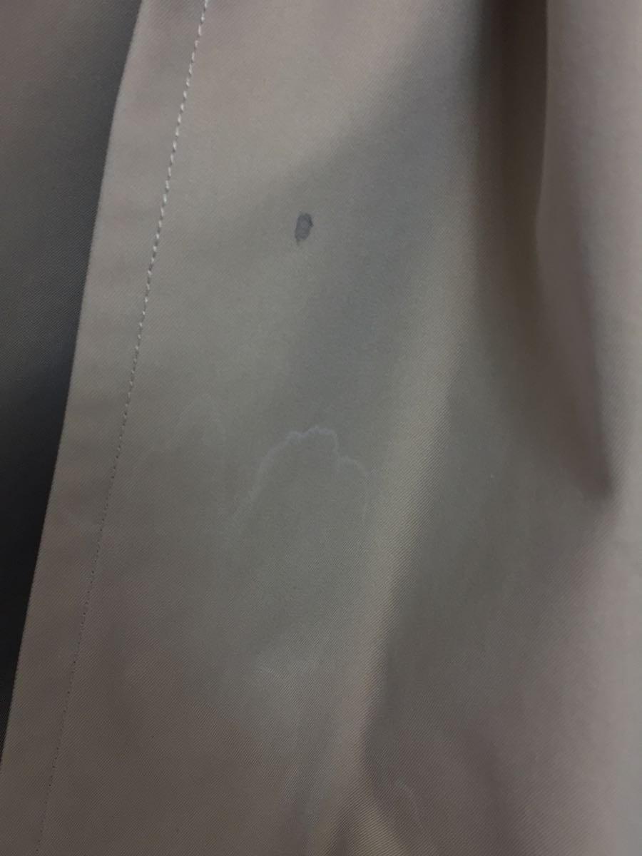 | 2023/シャンブレーポンチョトレンチコート 前下部分に汚れがございます。 後ろにシミがございます。 |