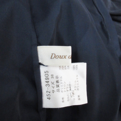 ドゥアルシーヴ DOUX ARCHIVES ダウンジャケット ミドル丈 ショールカラー総裏地 ジップアップ 38 紺 ネイビー /FF6 レディース