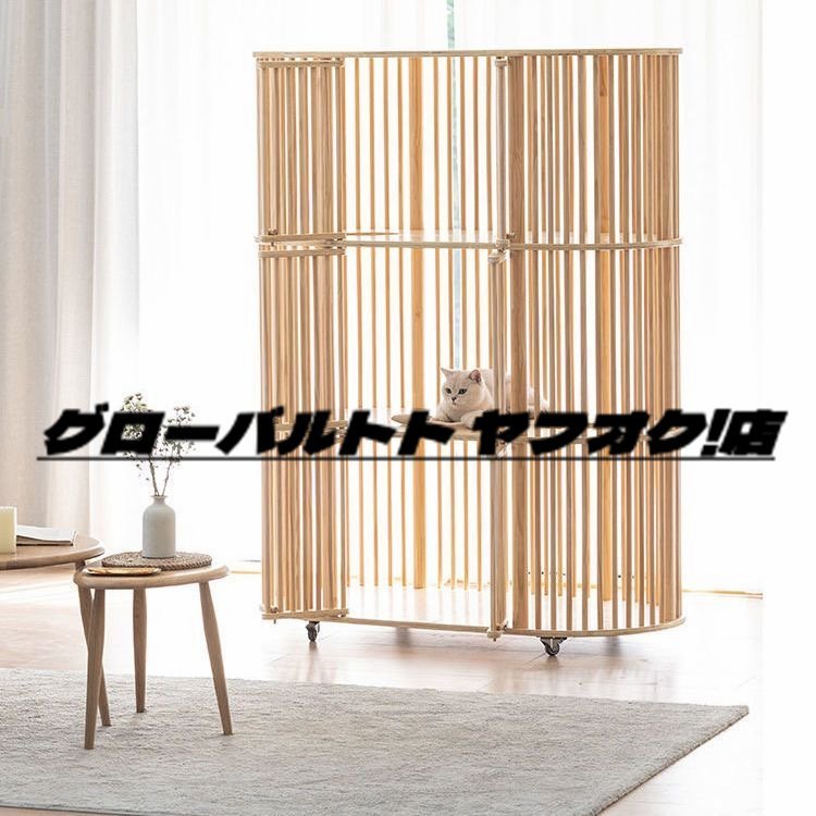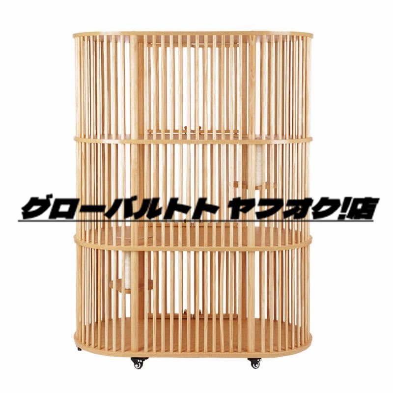 高品質 ★ 猫舎別荘 超ビッグ三段猫ケージ 上下運動でストレス解消キャットケージ3段 ソリッドウッド製 簡単取り付け 猫ケージ