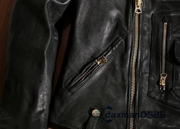 シープスキン 50's J-24タイプ ダブルライダース ブラック L(38) サイズ選択可 Dポケット レザージャケット ラム 羊革